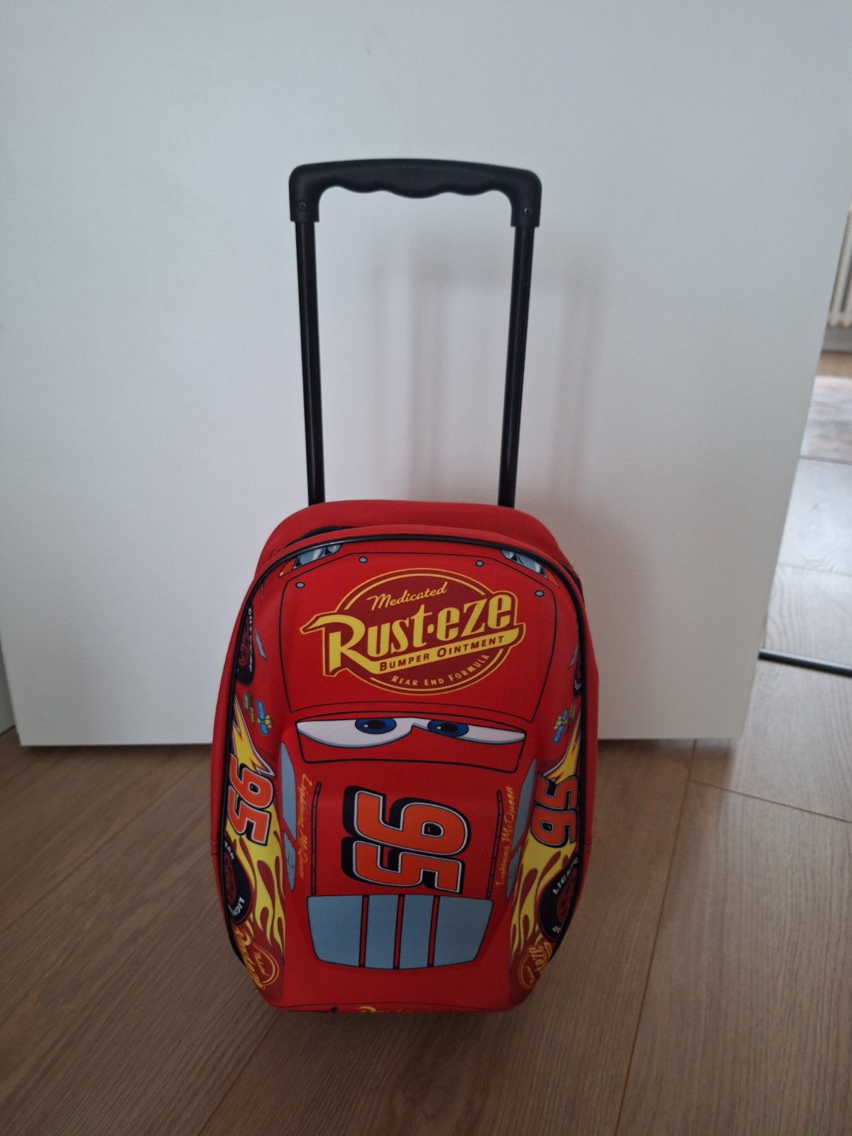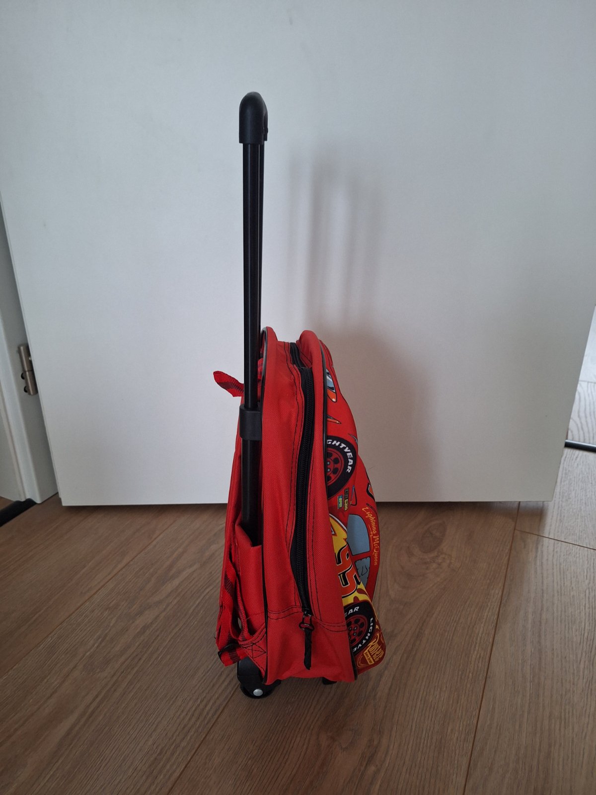 Malý detský kufor cars, možnosť niesť aj ako ruksak, alebo klasický kufor na kolieskach.