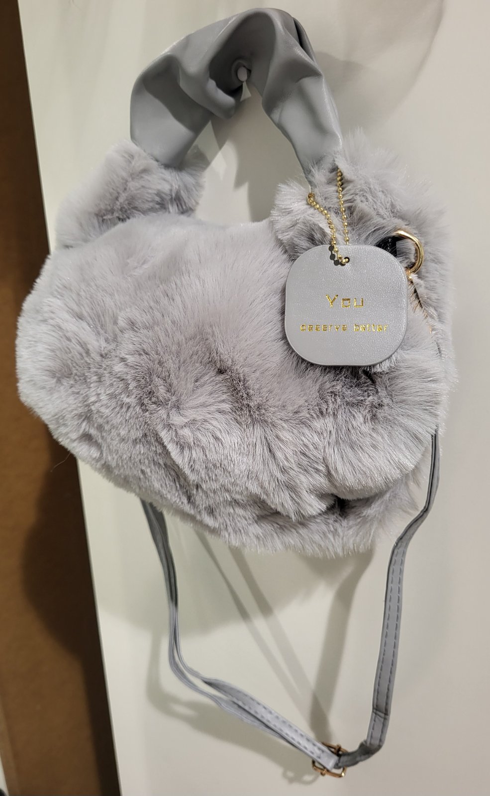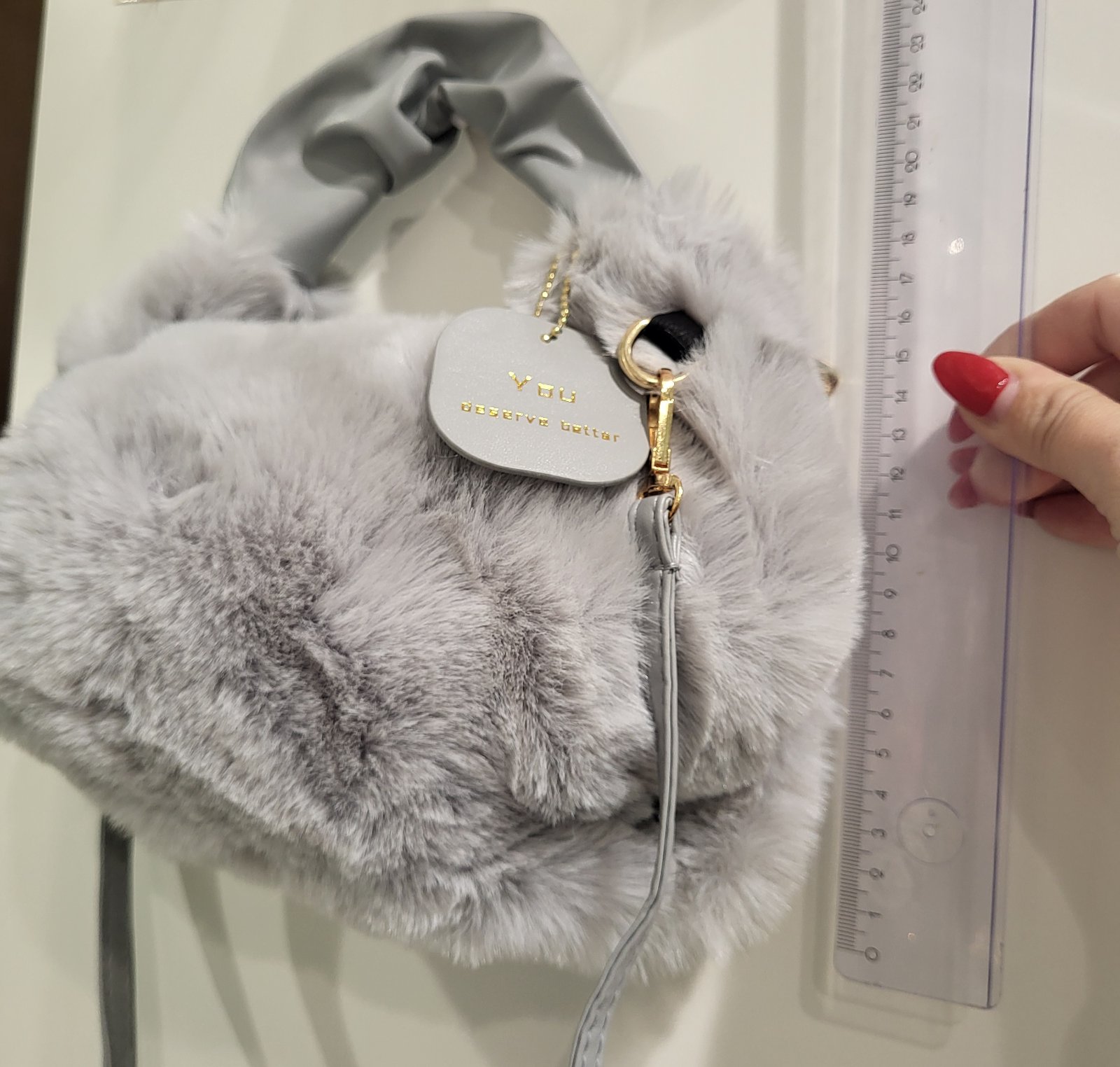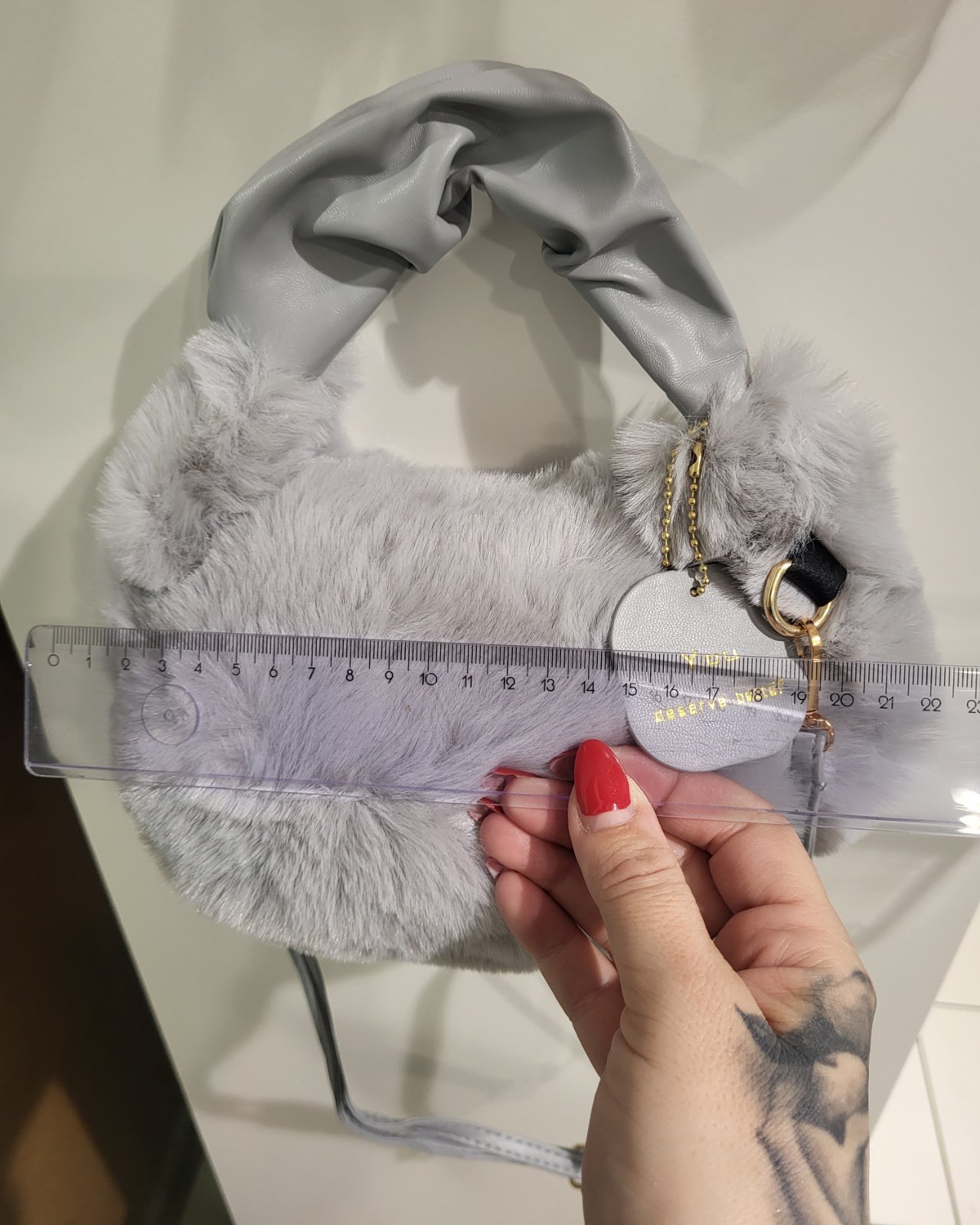 nenosená, jemná chlpatinka, s odnímateľným a nastaviteľným remienkom, koženkový úchyt, rozmery na fotkách, pošlem buď poštou alebo packetou