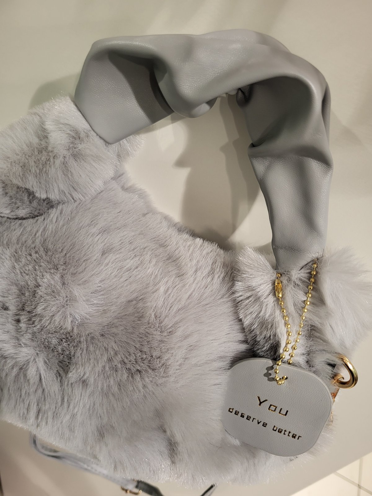 Kožušinková kabelka - sivá