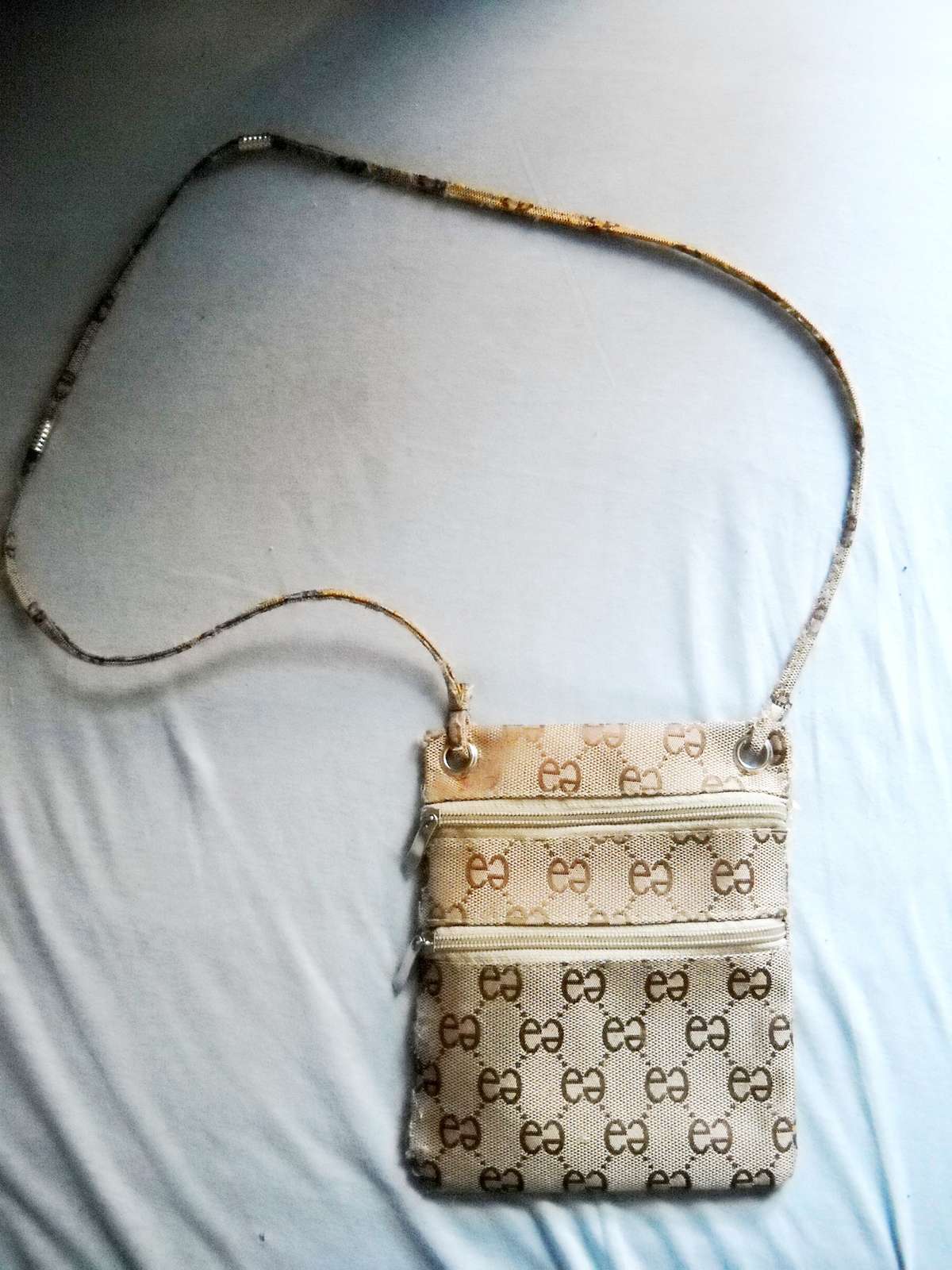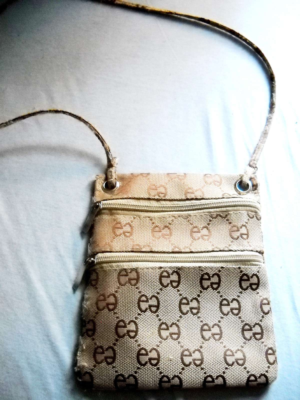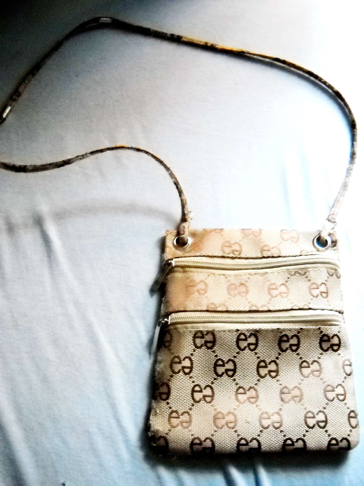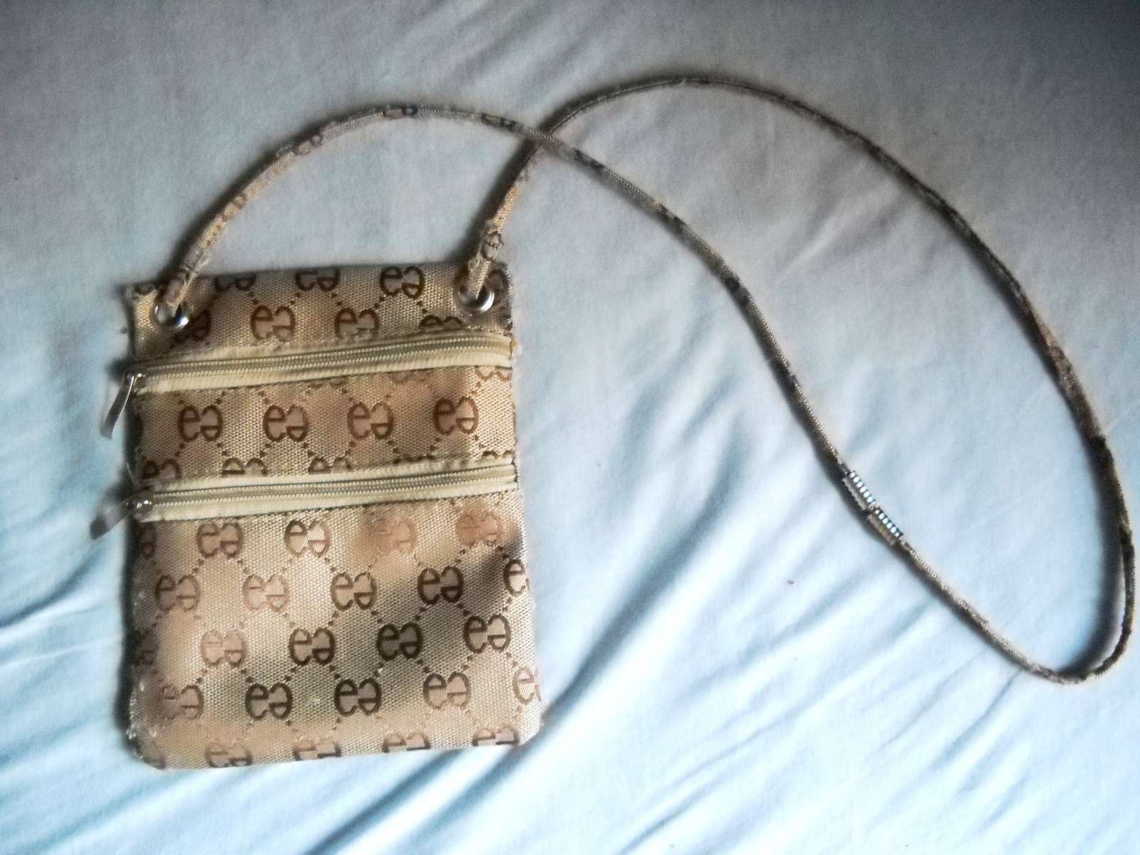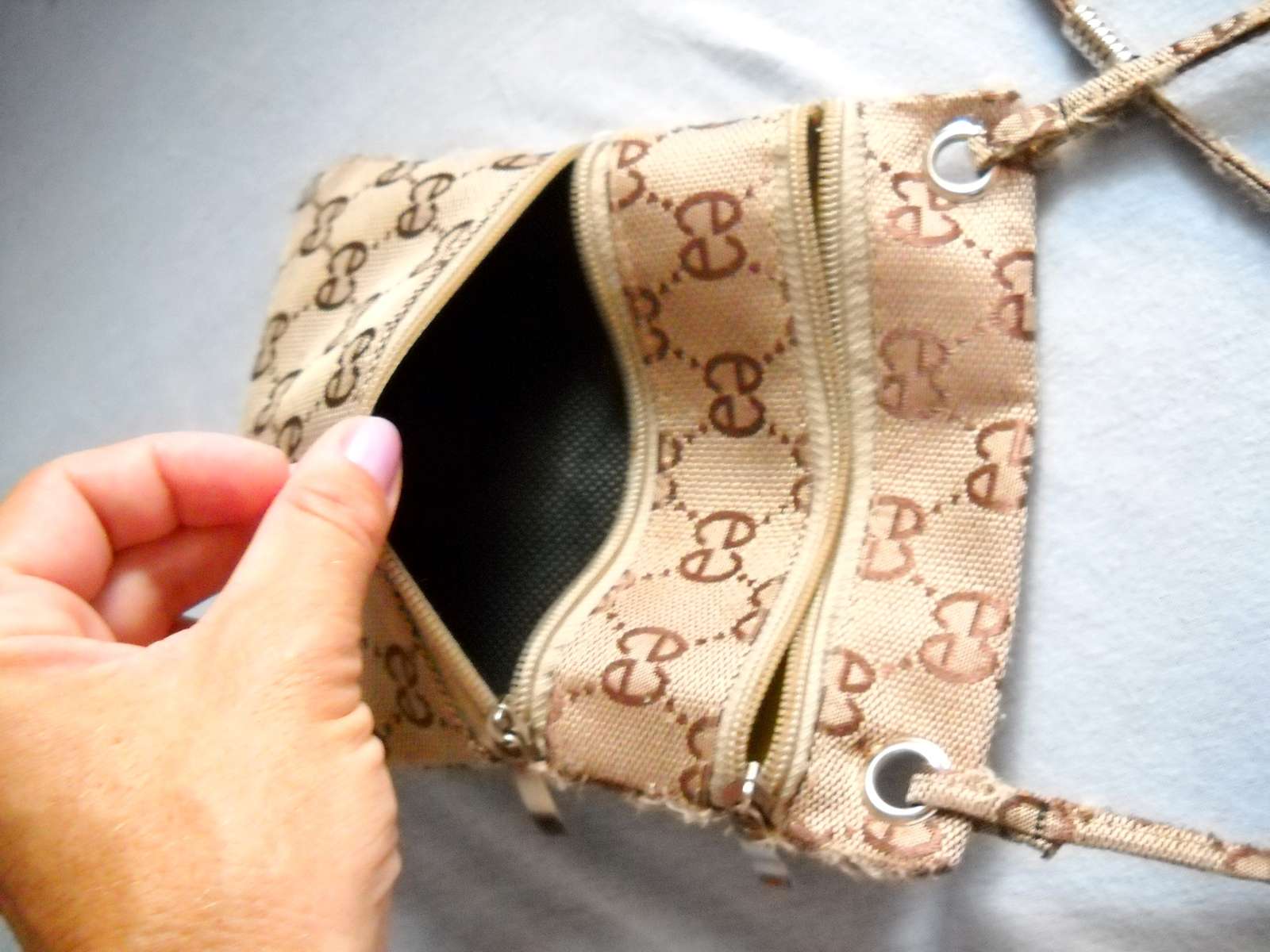 Používaná, je tam aj malá dierka, ale šikovná maminka zašije a bude okej.Sú tam dve zvlášť priehradky. Na doklady, penaženku..cca 20cmx16cm.