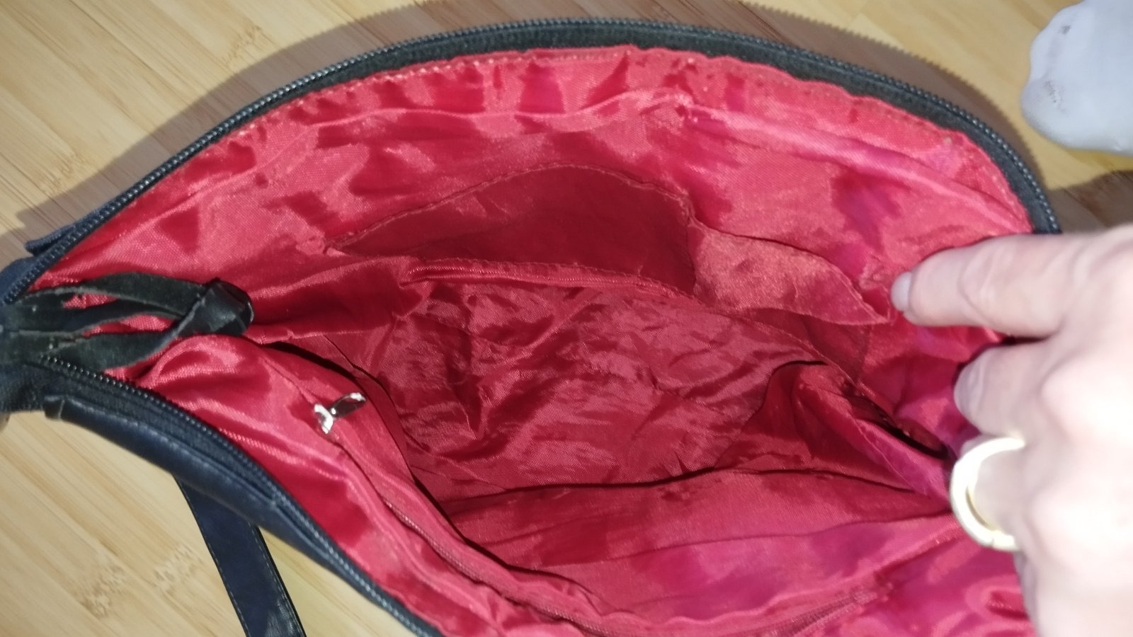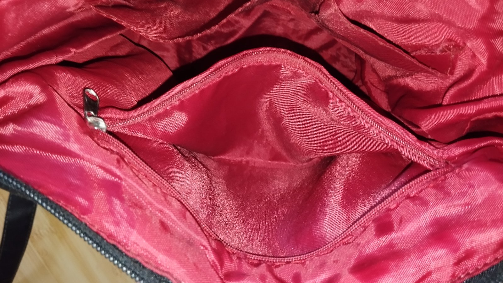 Vpredu kabelky je jedno vrecko a vo vnútri 1 na zips a 2 voľné.
