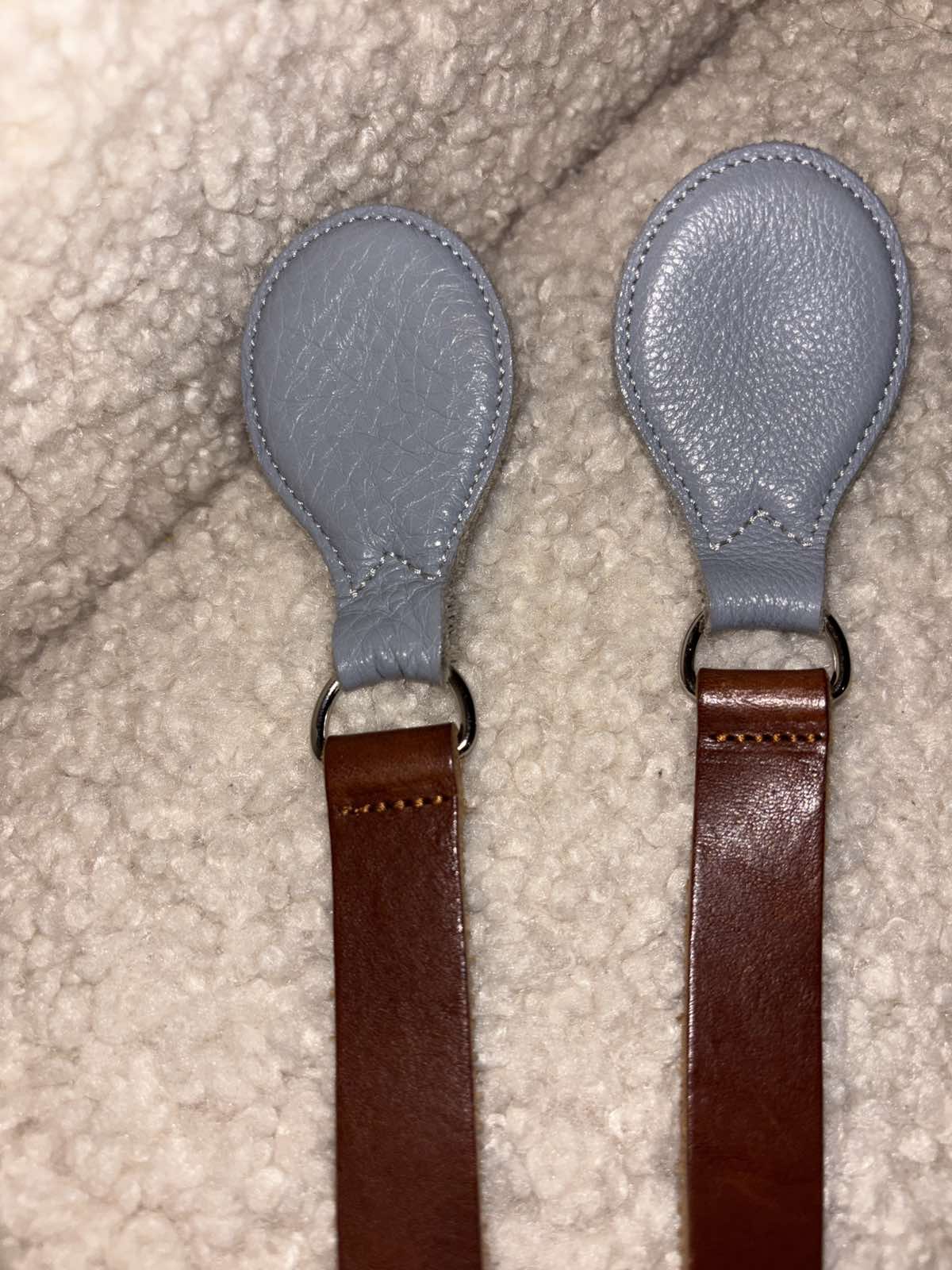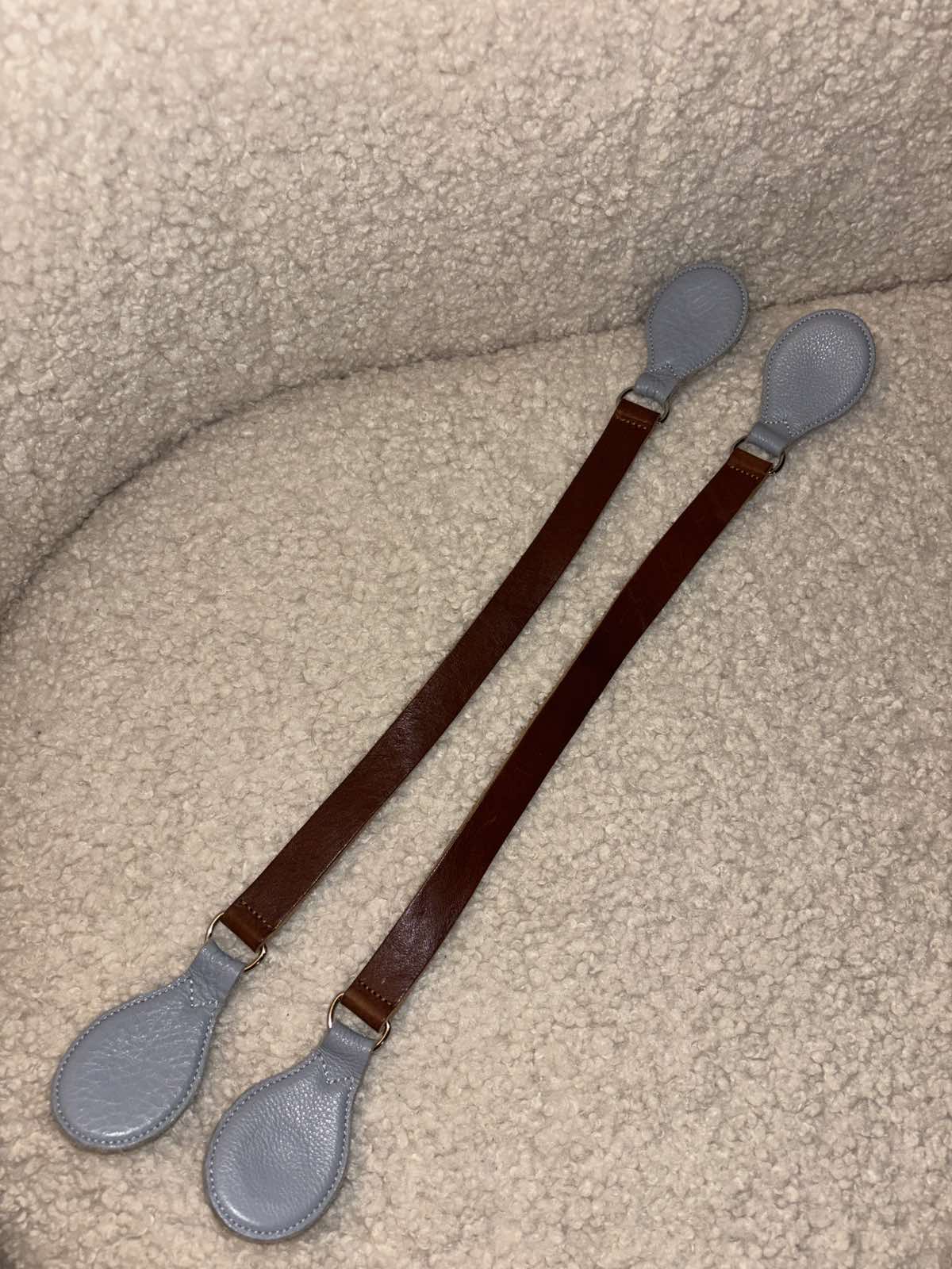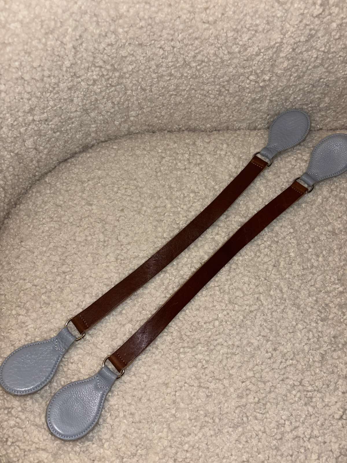 Výborný stav, kožené, modro - hnedá koža, vyrobené na zákazku, krátke