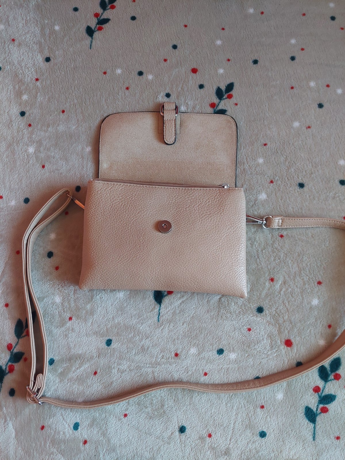 Talianska menšia kabelka béžovej farby v kombinácii so striebornými doplnkami.Nenosená. Poštovné 3,50 €
