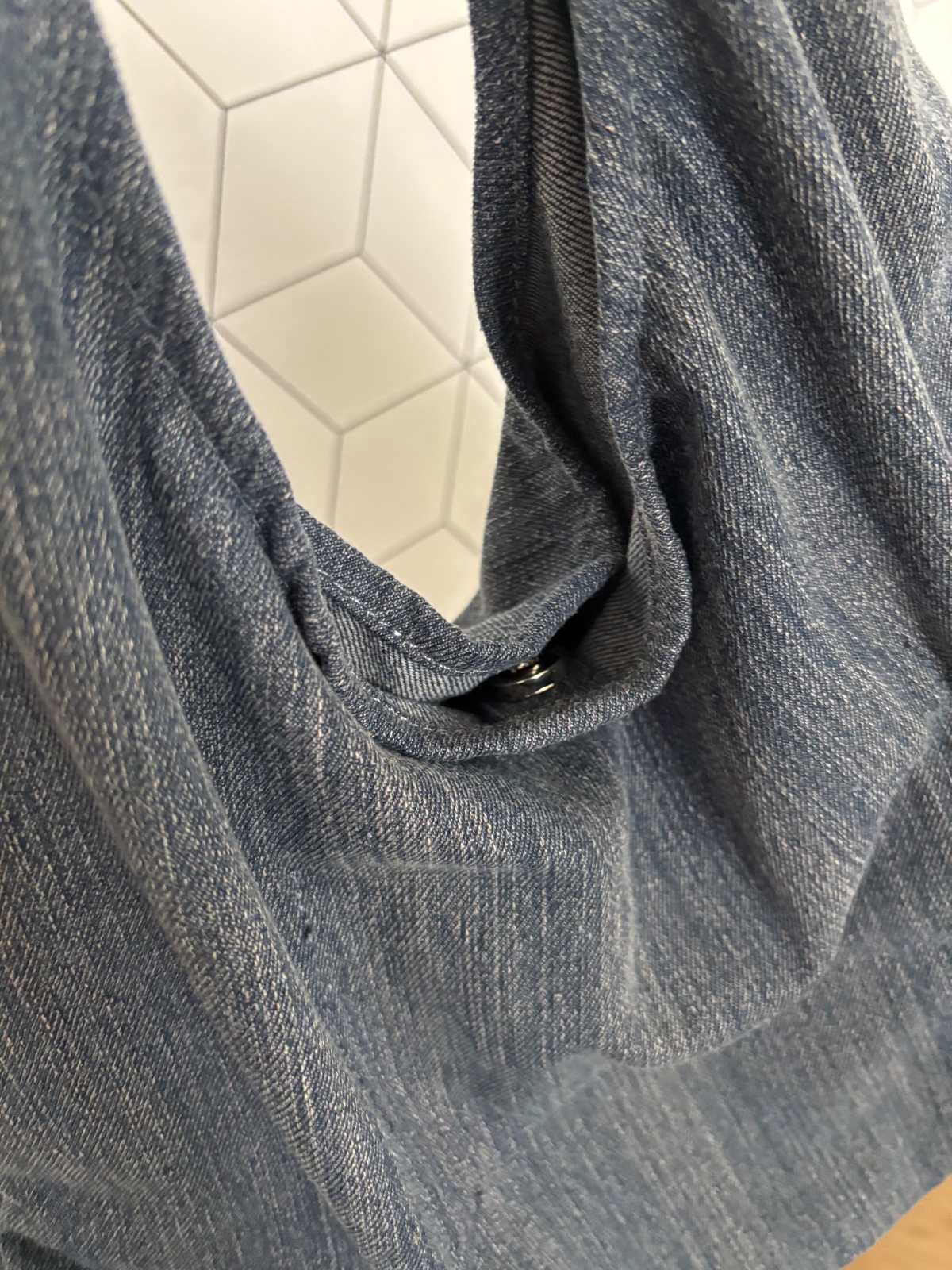 Veľká hobo bag zo šatky na nosenie detí značky Lenny Lamb Snow Queen Glittering. Vnútri má dve vrecká a gumu na fľašu. Zopár nevyprateľných fľakov je iba vnútri.