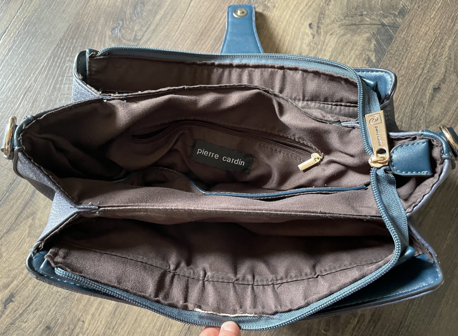Kabelka značky Pierre Cardin. Vnútorné vačky aj na zips.