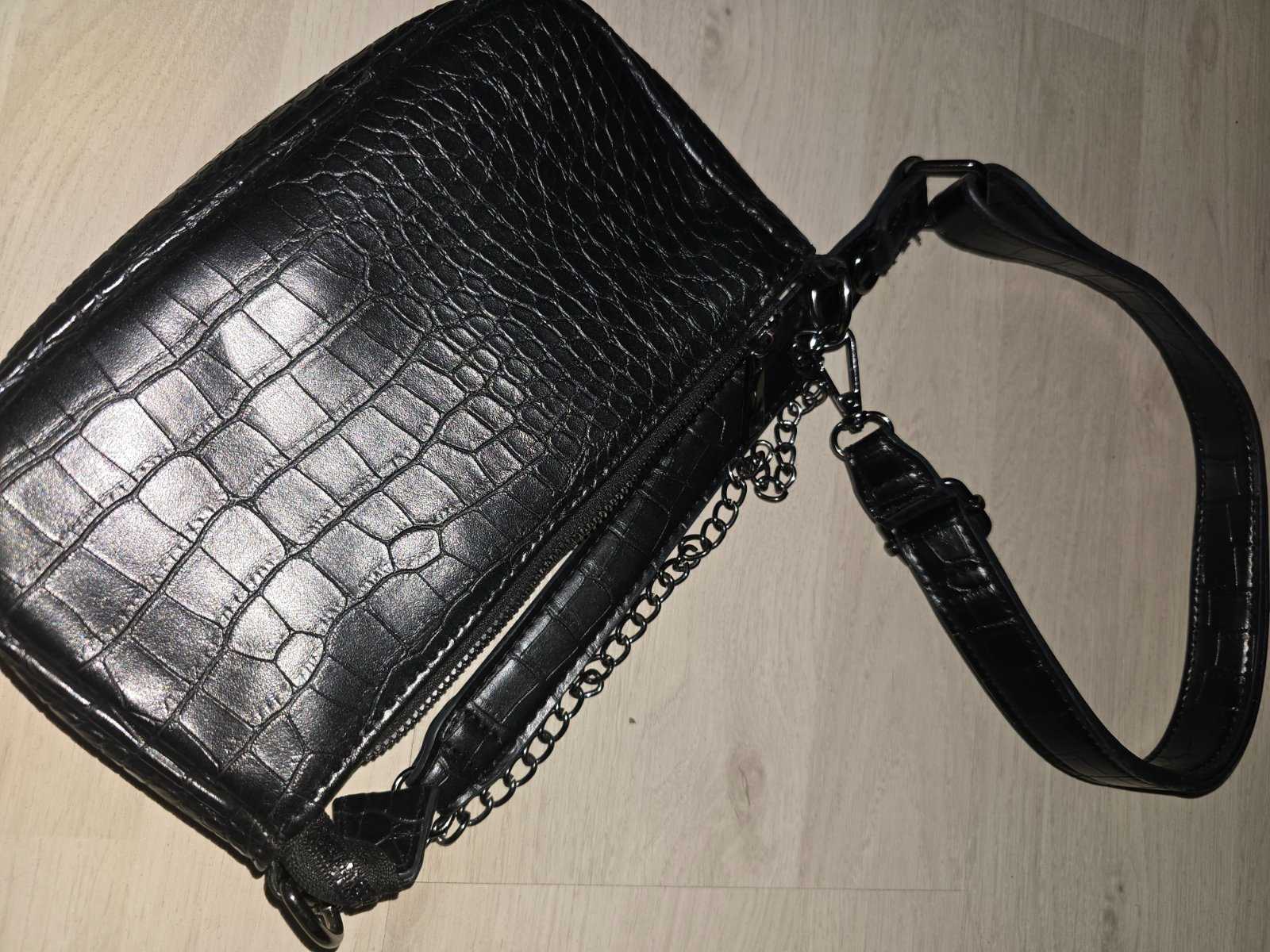 Predám používanú kabelku.Bez poškodenia.Len do ruky.Rozmery: šírka 33cm, výška bez ramienok 24 cm,hrúbka 10cm.