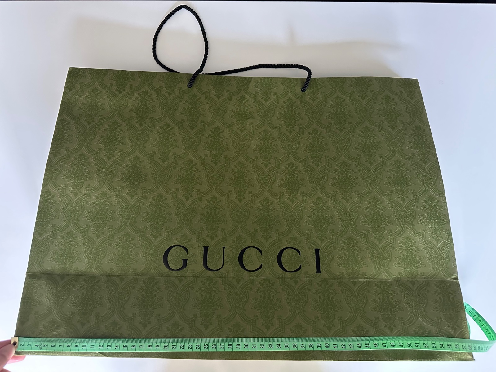 Predám Gucci papierovú tašku s rozmermi 58 cm x 43 cm. Možný je len osobný odber v BA vzhľadom na veľkosť a prípadné poškodenie pri poštovej preprave.