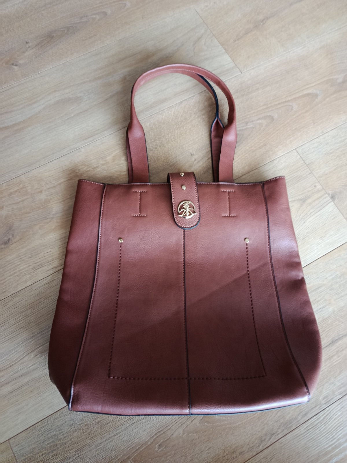 vzor: MK monogram farba: hnedá zlaté kovanie veľká priestranná rozmery: šírka dole 31cm, šírka hore 41cm, výška 29cm umelá nepravá koža