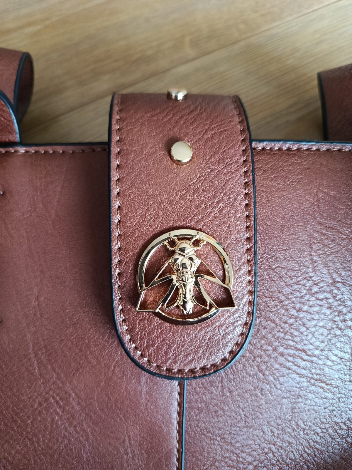Coccinelle shoulder bag farba: hnedá so zlatým kovaním len krátke uško, dá sa nosiť na ramene materiál: koža veľkosť: šírka v strede cca 30 cm, výška 30 cm