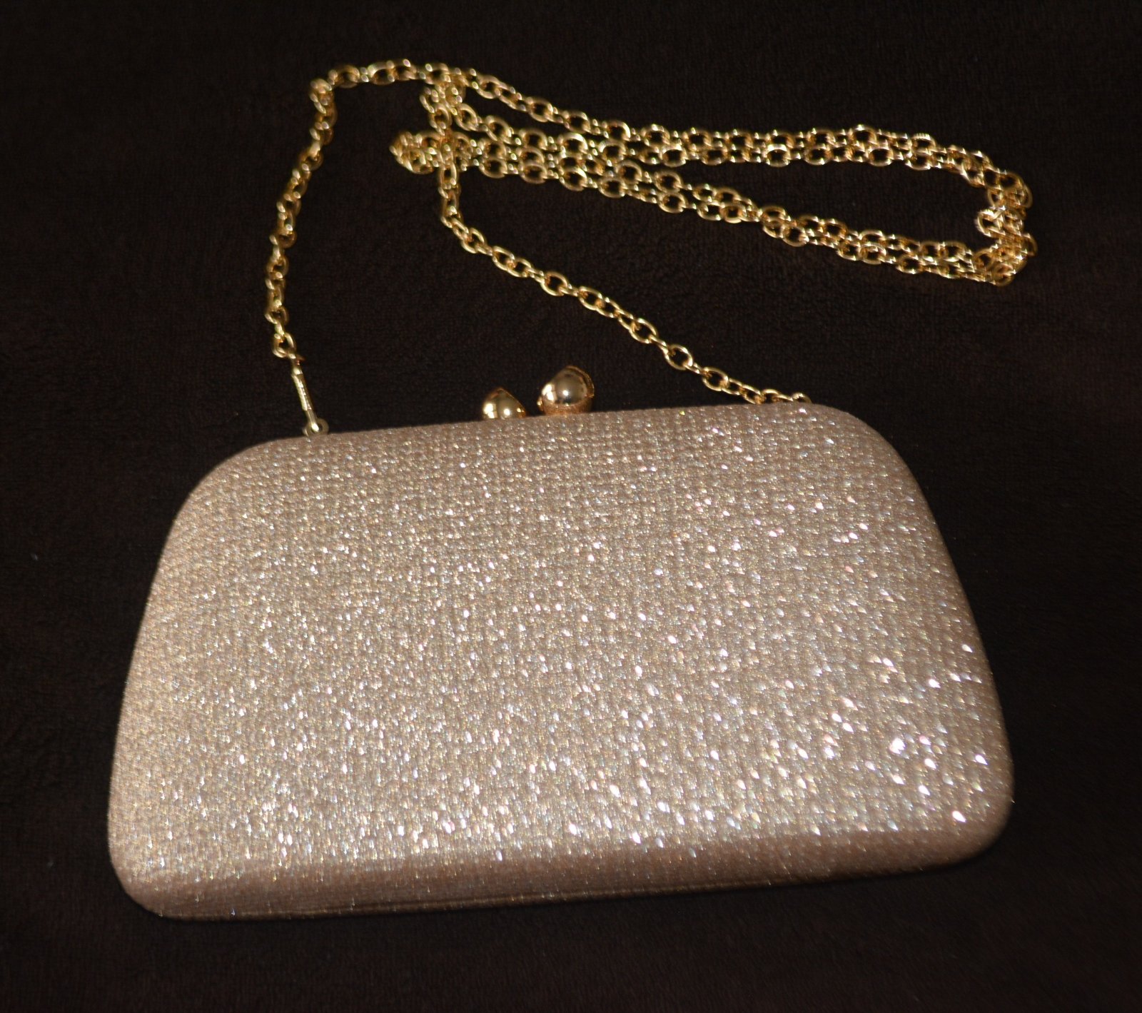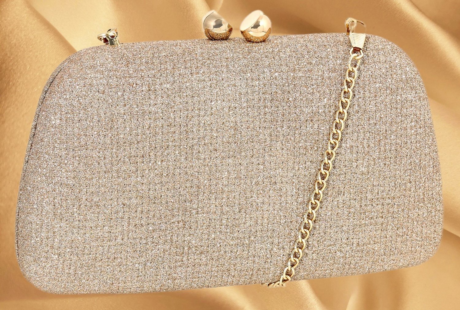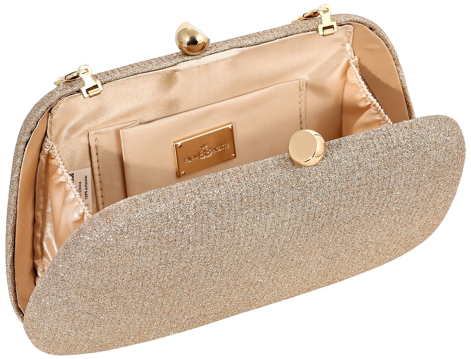 Clutch kabelka Golden Shine od Bijou Brigitte je vyrobená zo zlatej látky s trblietavým efektom. Vnútorná podšívka je béžová a má malé vnútorné vrecko.