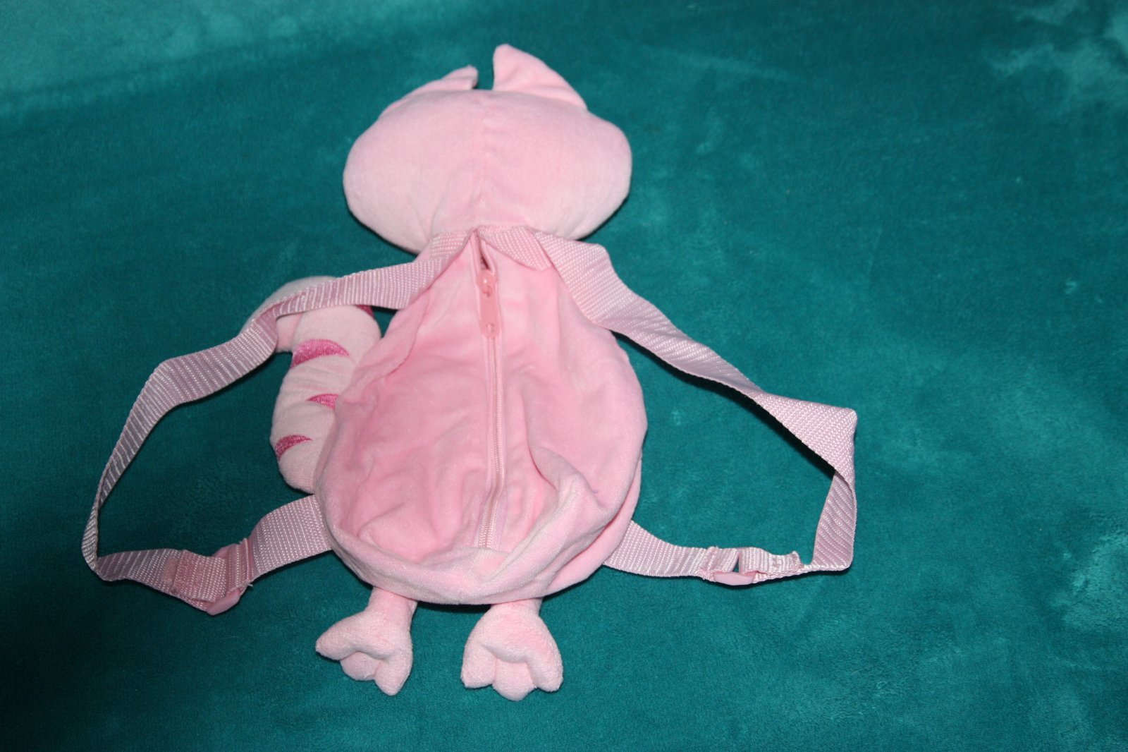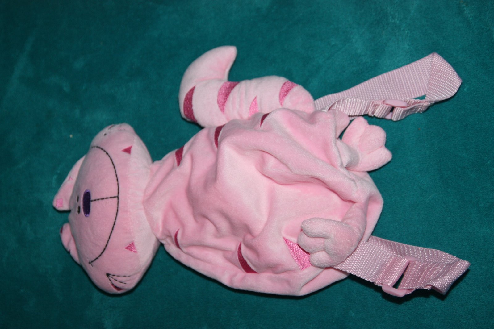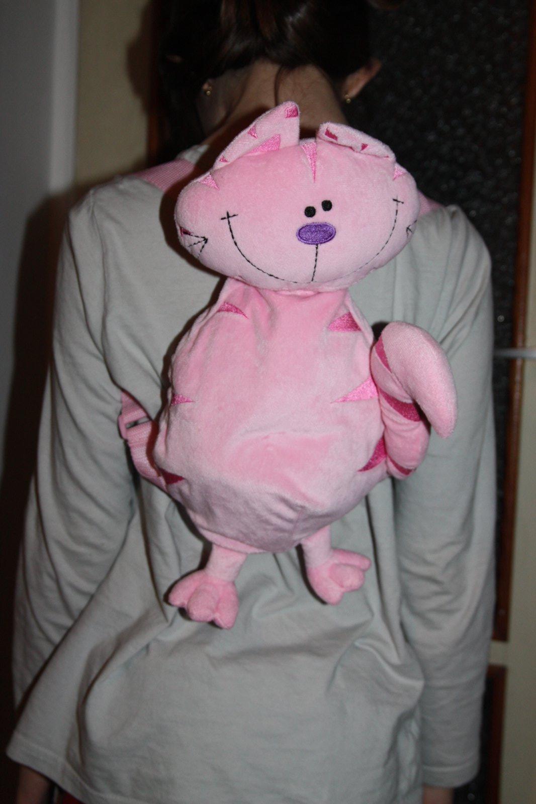 Maly ruksacik pre slecnu - skolkarku. Super stav. Macicka ma na vysku cca 30 cm, z toho hlavicka cca10 cm, telo ( ruksacik) 20 cm.
