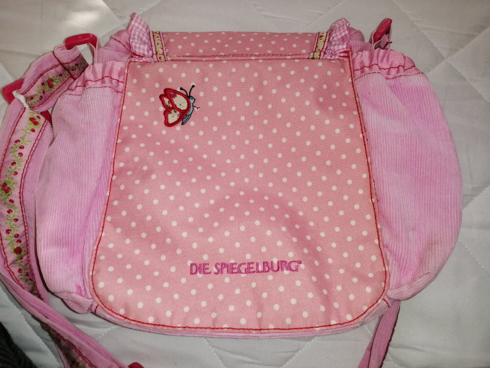 Vo veľmi dobrom stave. 22x27 cm + ramienko. Malé bočné vrecká, vnútro + jedno malé vrecko so srdiečkom. Menčester + látka.