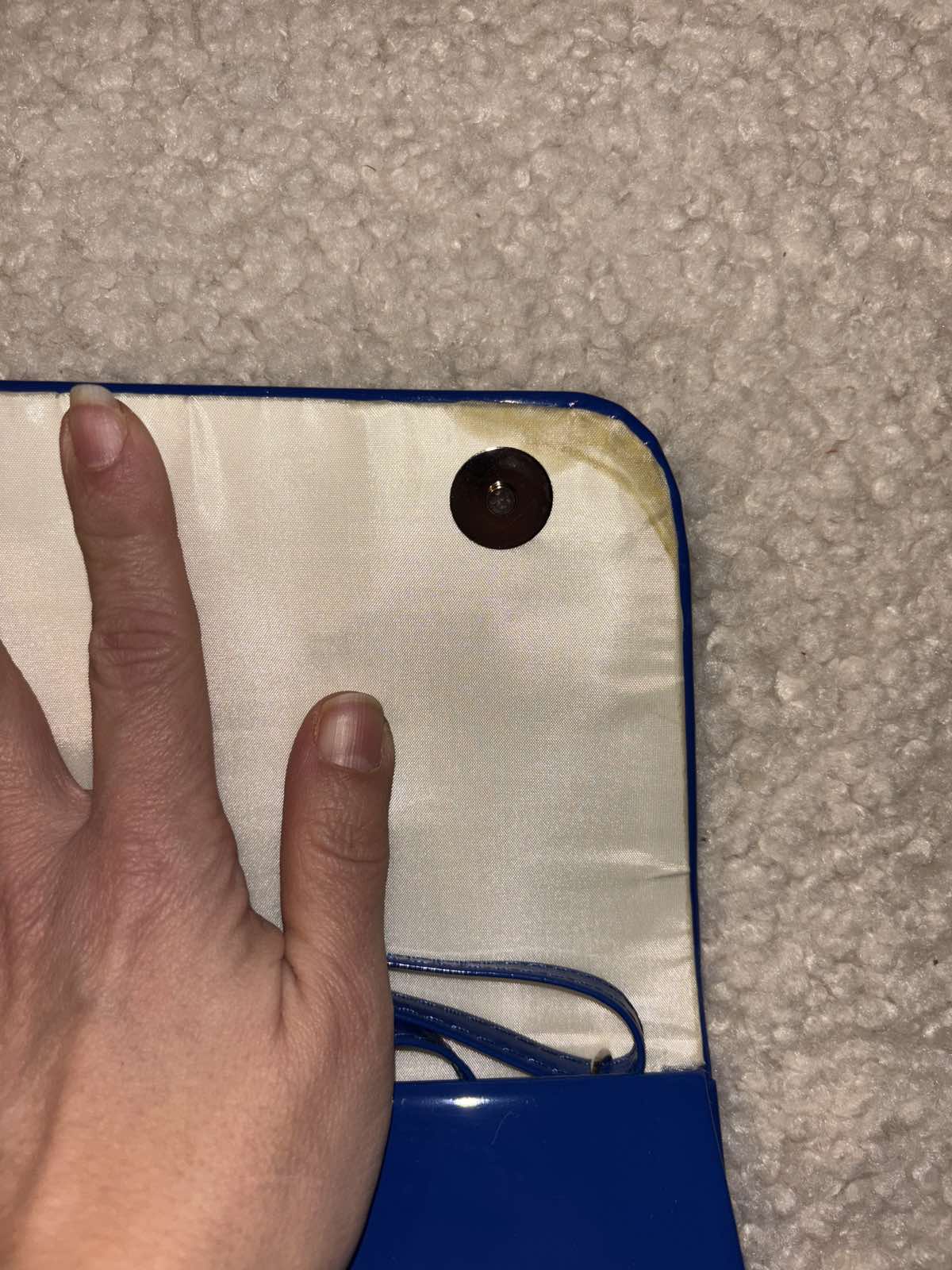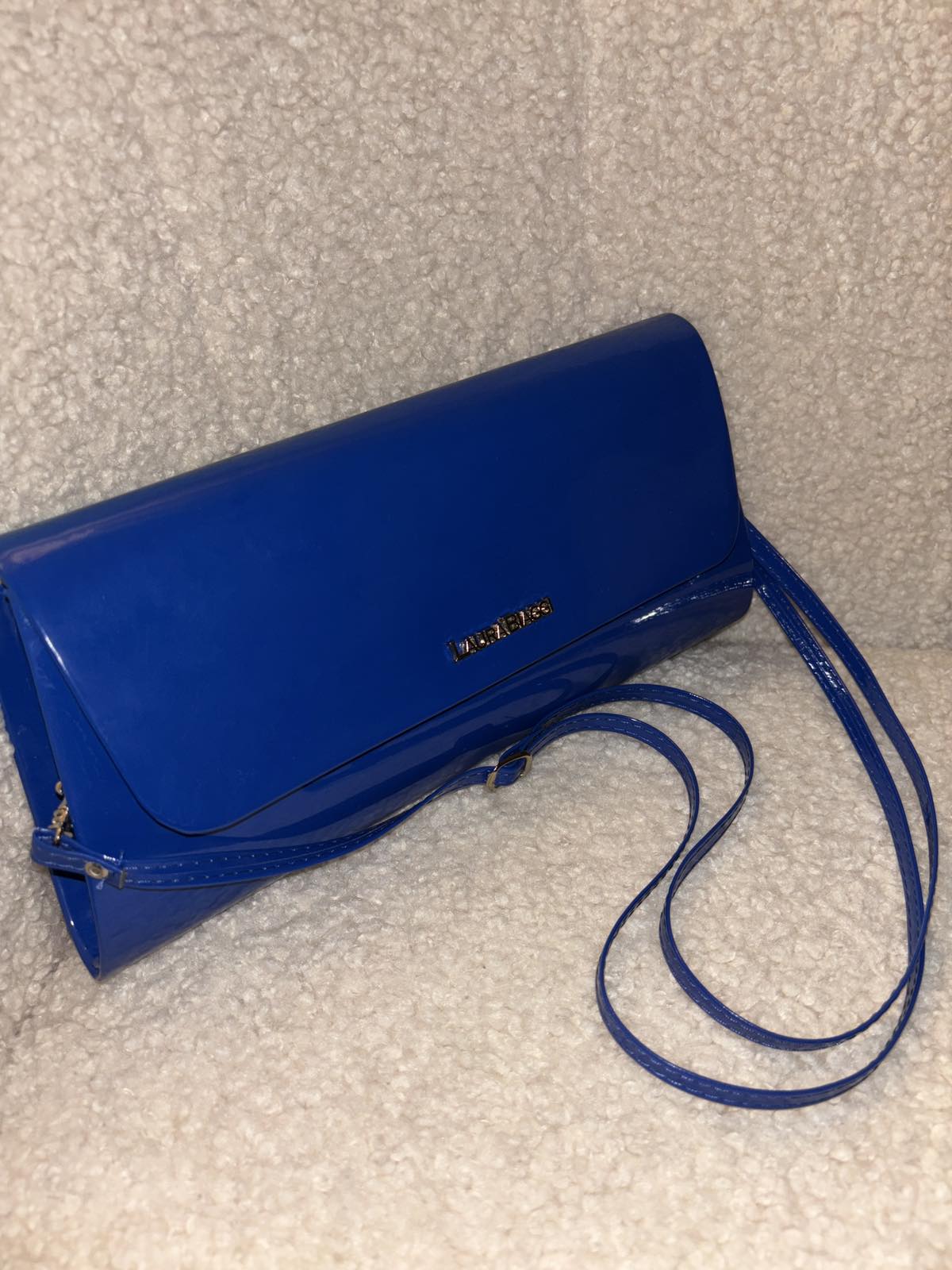 Výborný stav, kráľovská modrá, lakovaná, vnútro má jemne uspineny roh, remeň je odoponatelny, dĺžka aj na crossbody, rozmer 30x14 cm
