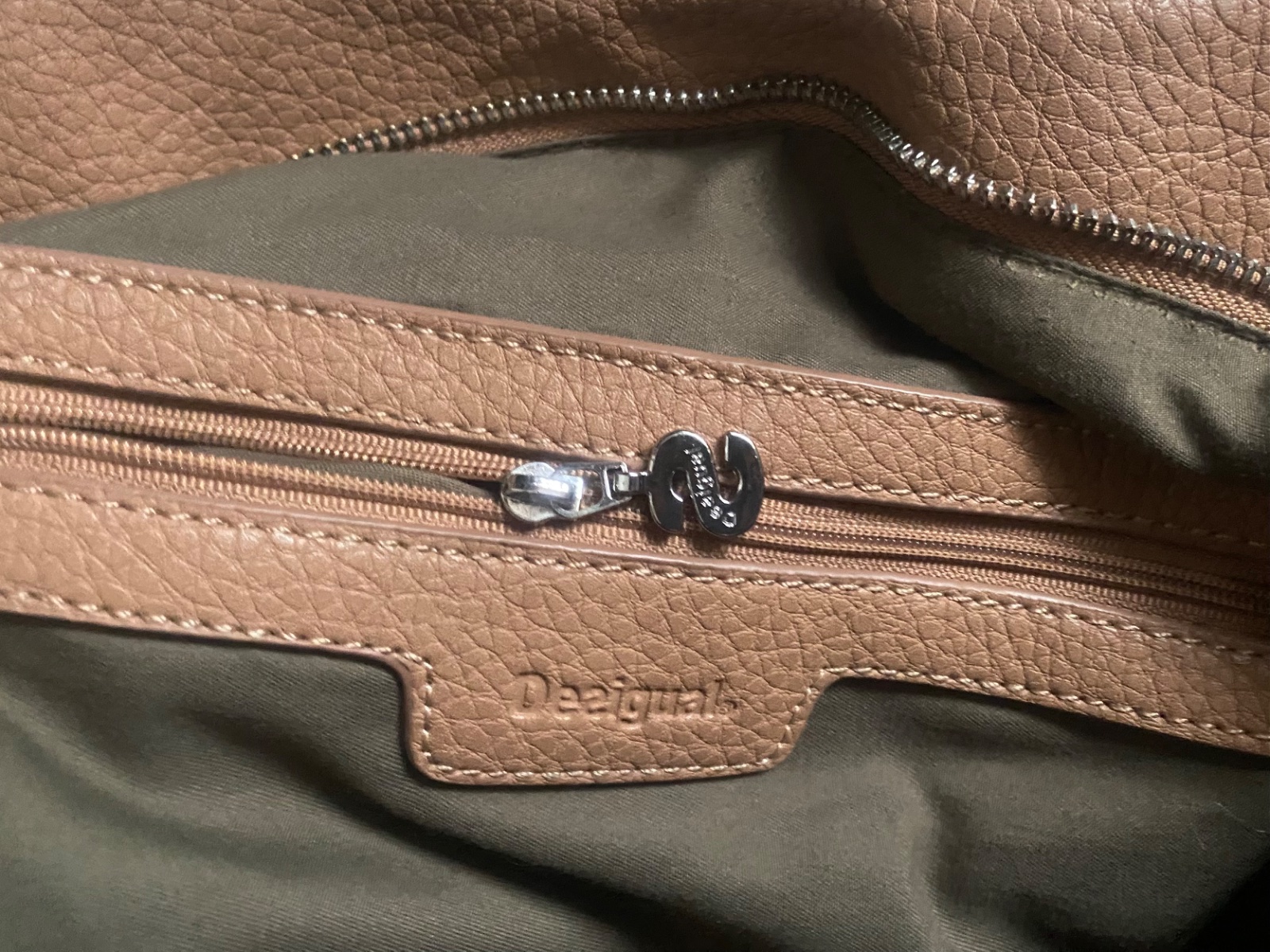 Desigual kabelka koźená zapínanie na cvok šírka 40 výška 36 vnútri jedno vrecko