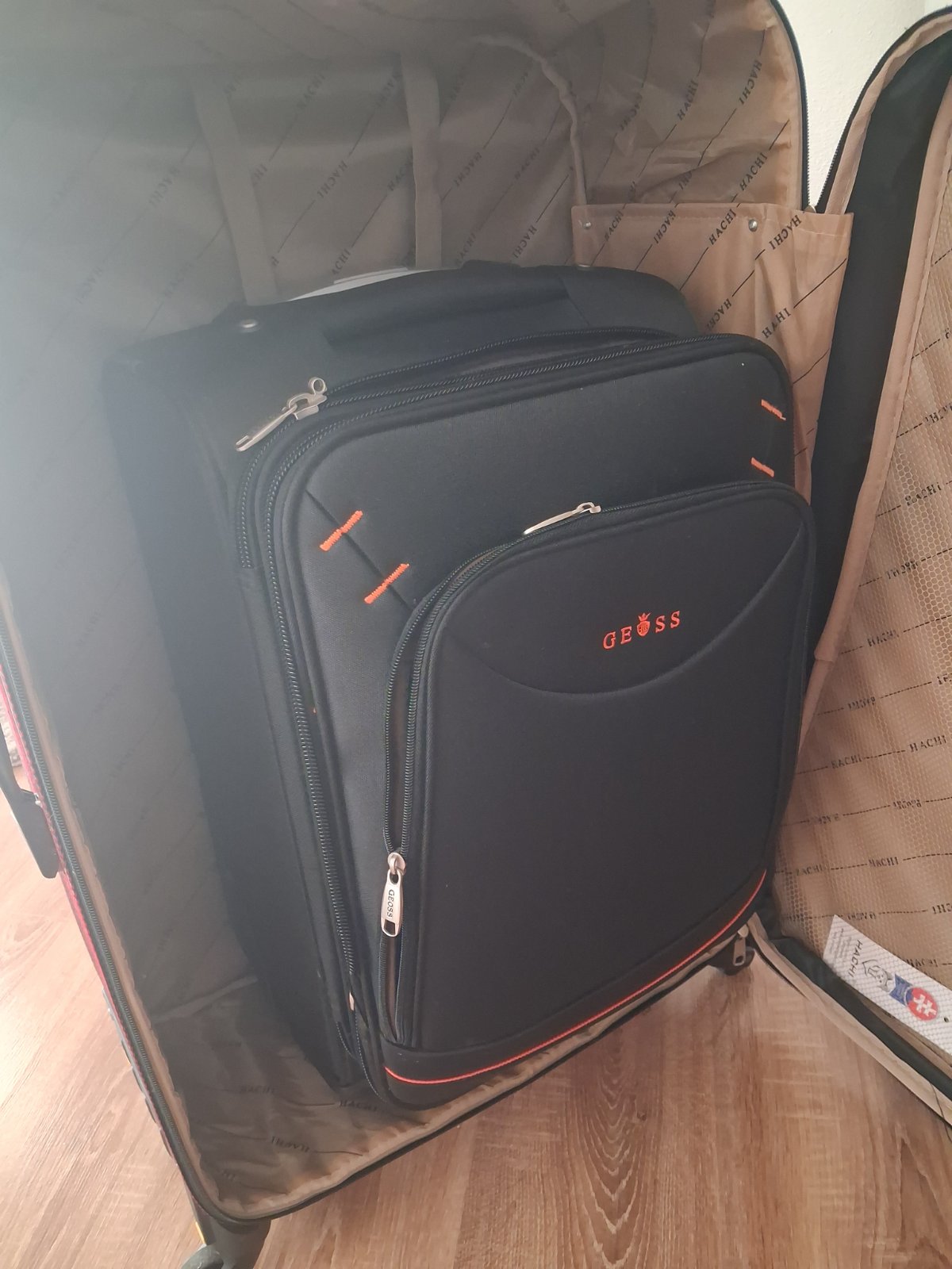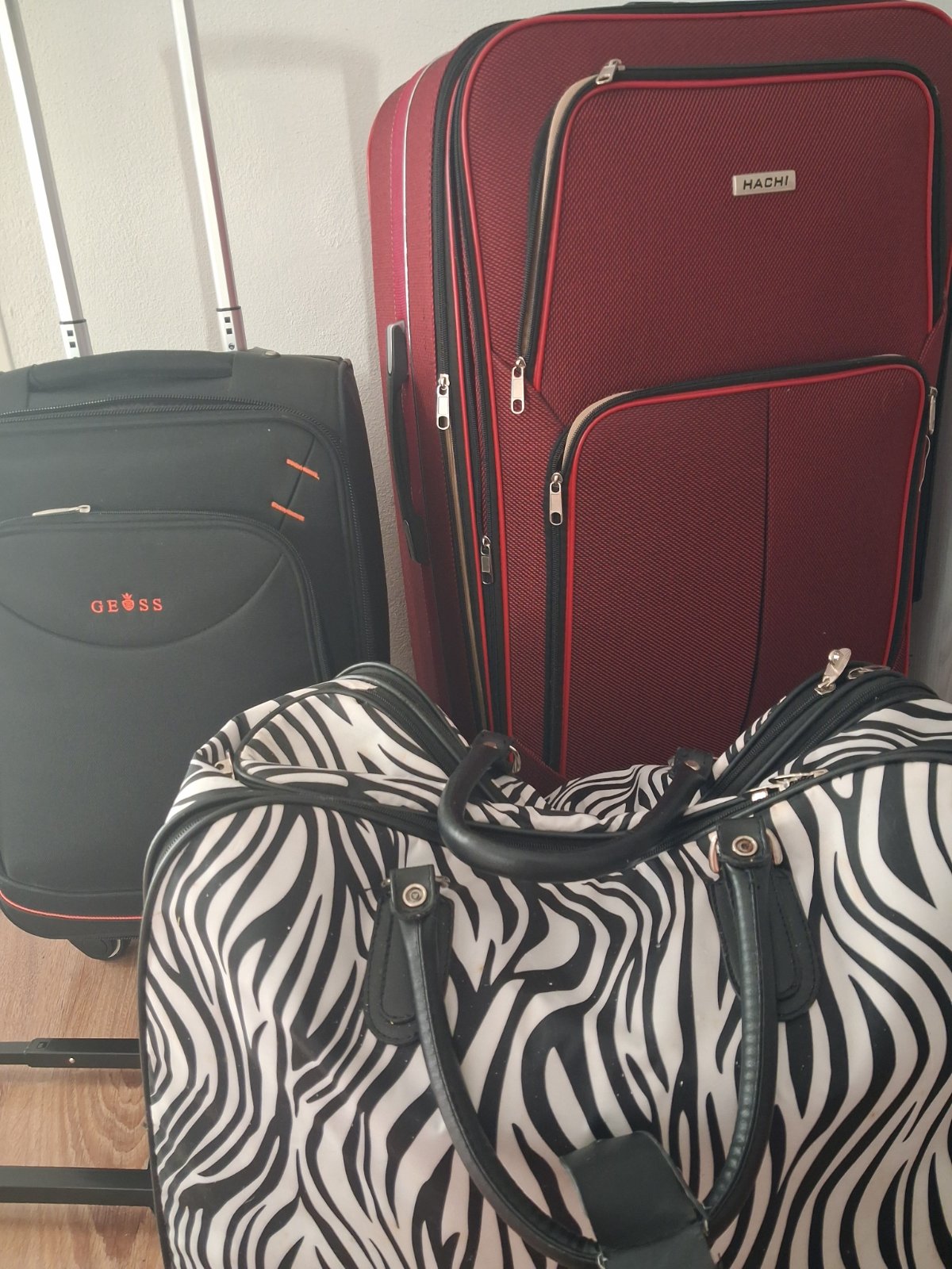 Cestovný kufor bordový, čierny. Cestovná taška, ktorá má je aj na kolieskach. DOVOZ MOŽNÝ 0903255 469 CENA po dohode. Ciernobiela za 6 eur. Cierny kufor za 6 eur.