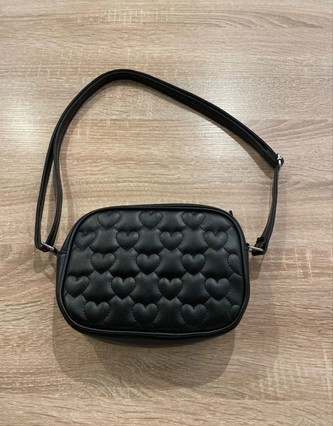 Čierna crossbody kabelka so srdiečkami