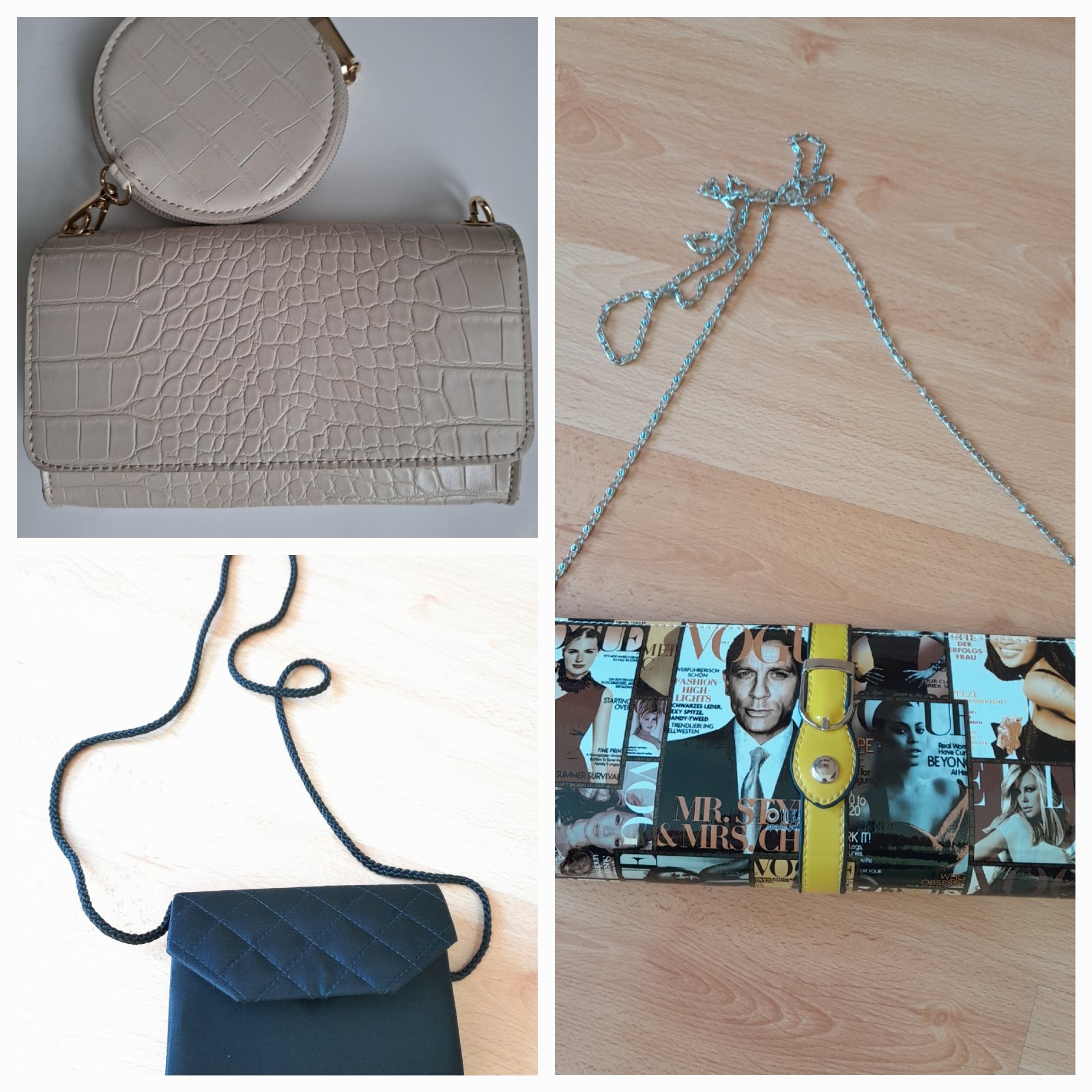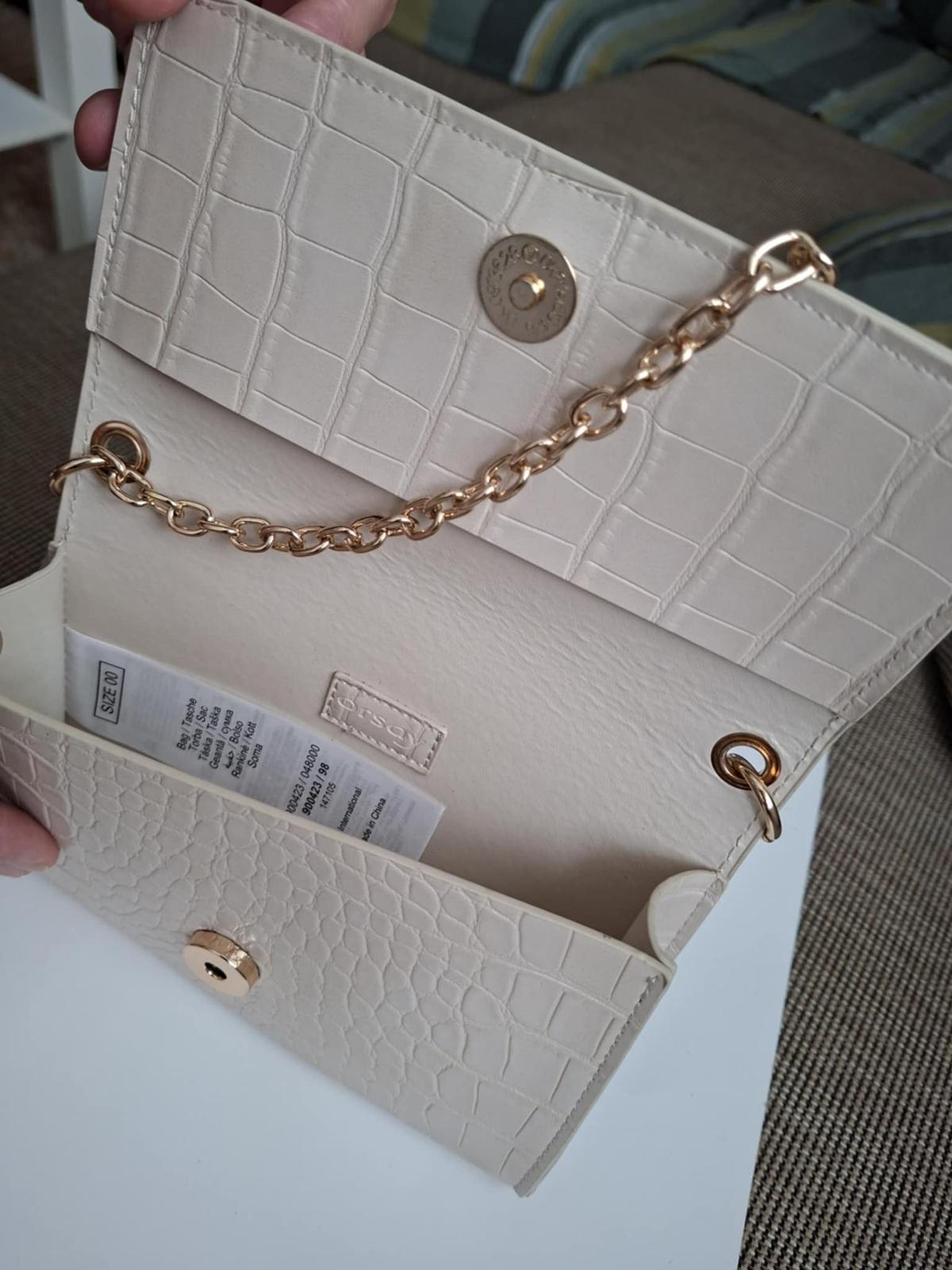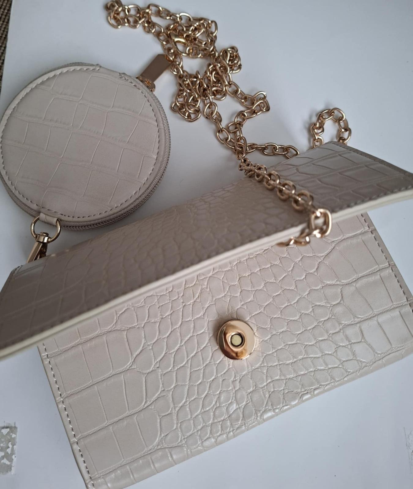 Pekná moderná netypická kabelka s retiazkou 30×13 cm v 100% stave kupovaná v zahraničí. Retiazka sa dá odopnút alebo schovať a použiť ako listová do ruky,cena 10€.Béžová kabelka nová s retiazkpu za 10€ a malá čierna nová za 3€. Úhrada vopred +poštovné alebo osobne v Nitre. Posielam slov.poštou.Dobierka NIE.