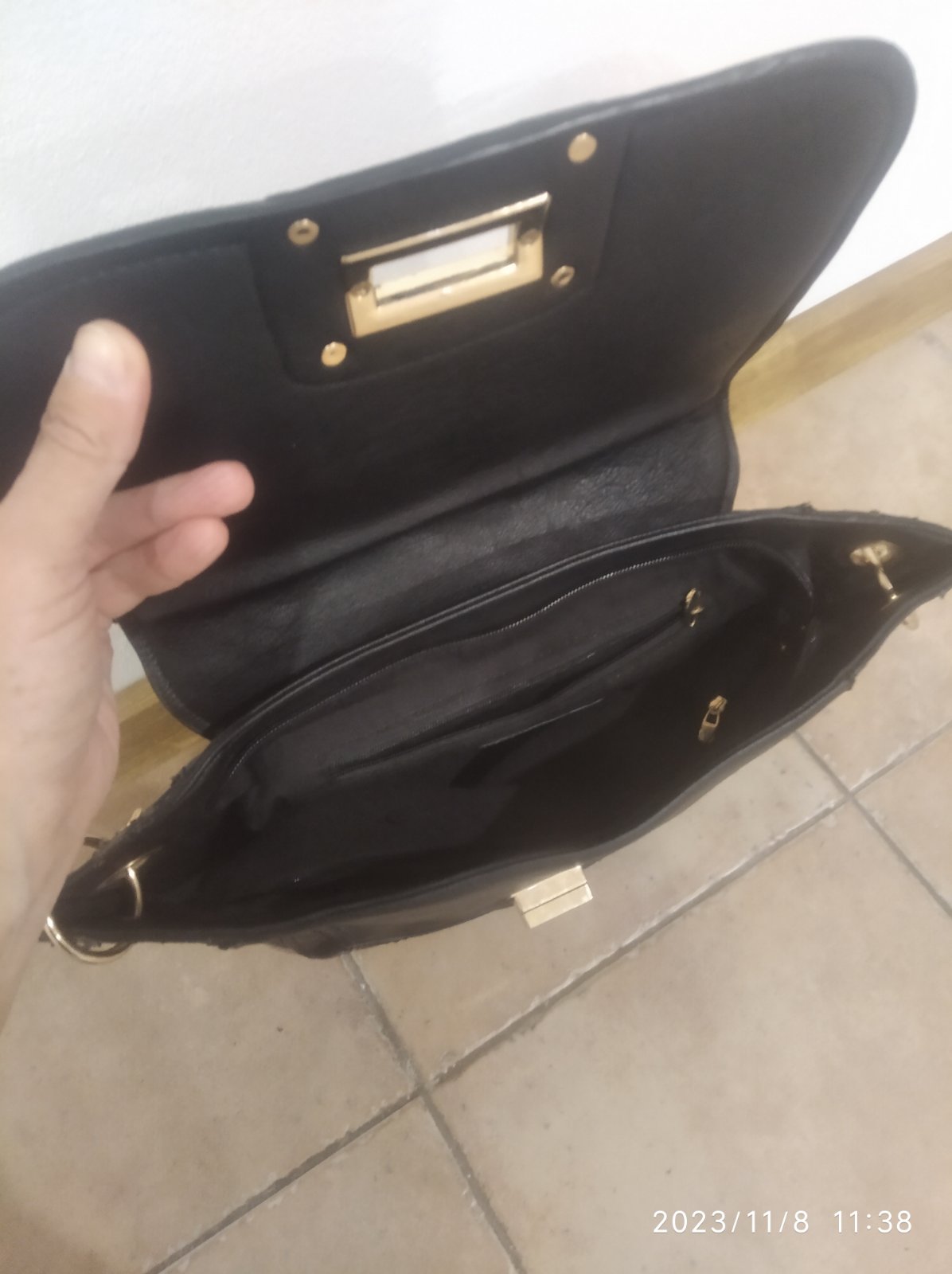 Dámska kabelka so zlatými detailami