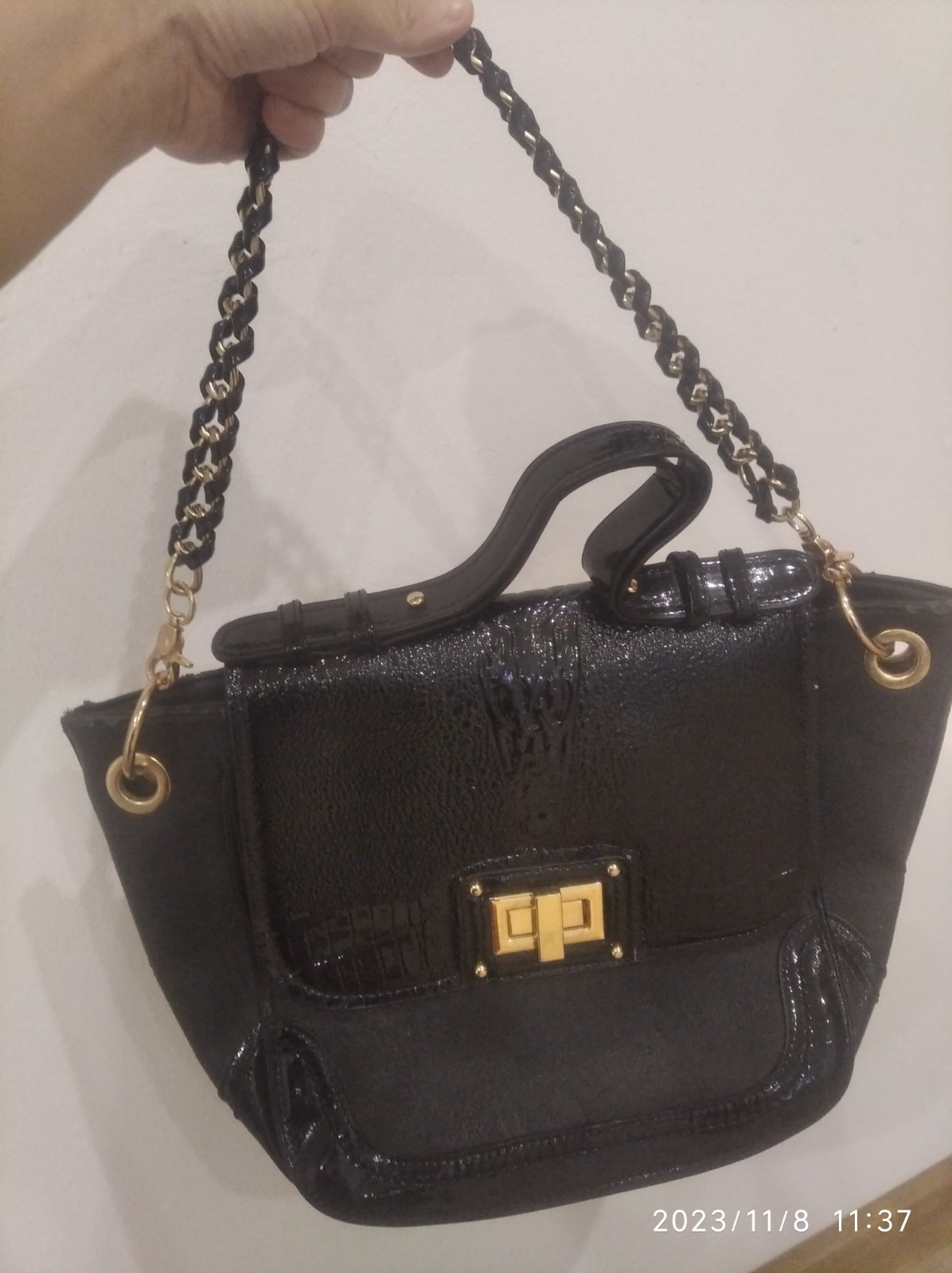 Čierna lakovaná kabelka