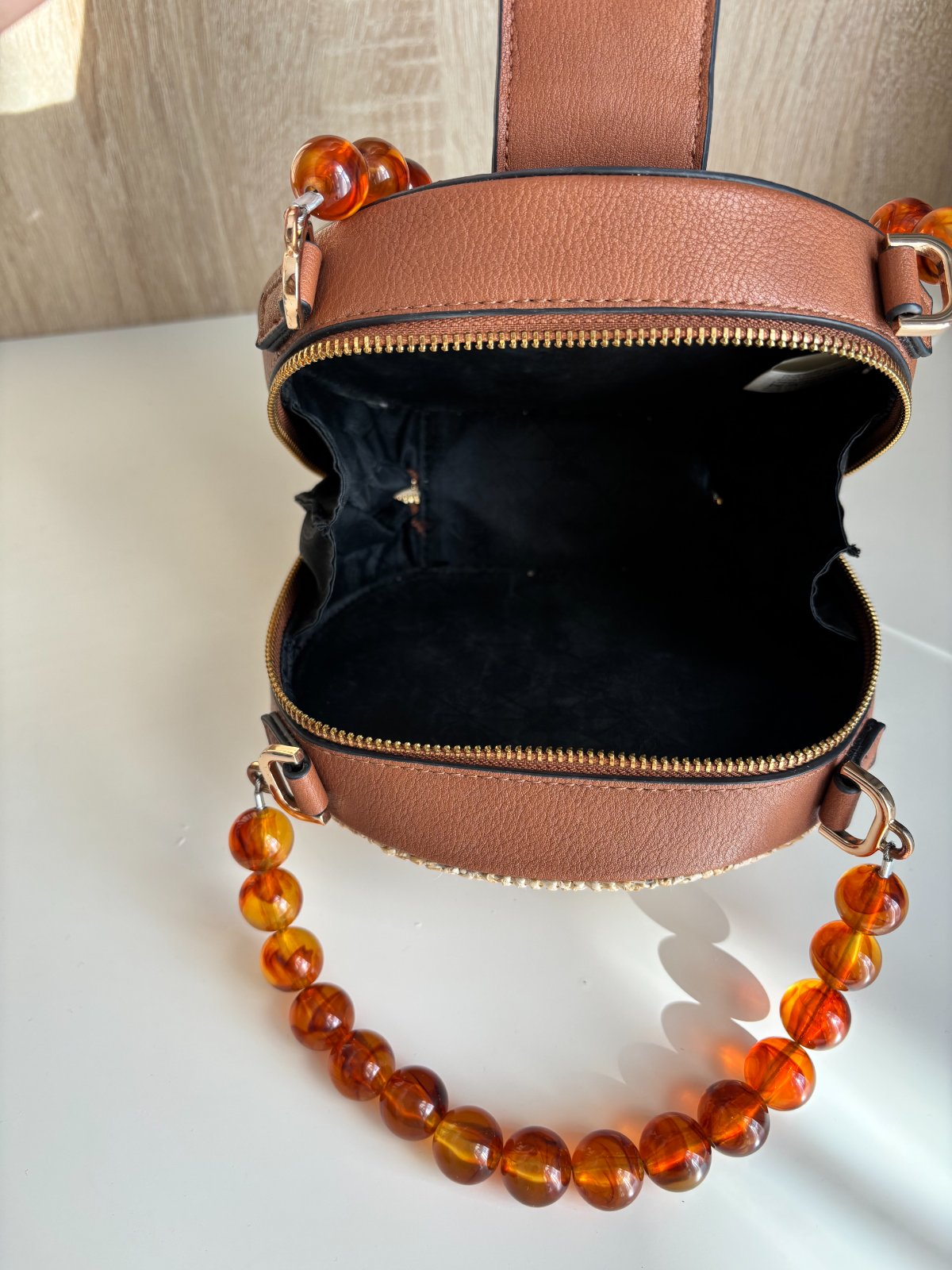 Kabelka značky Dune London so slamenou aplikáciou na prednej strane a korálkovými ramienkami. Doručenie osobne v BA/NR alebo cez Packeta box.