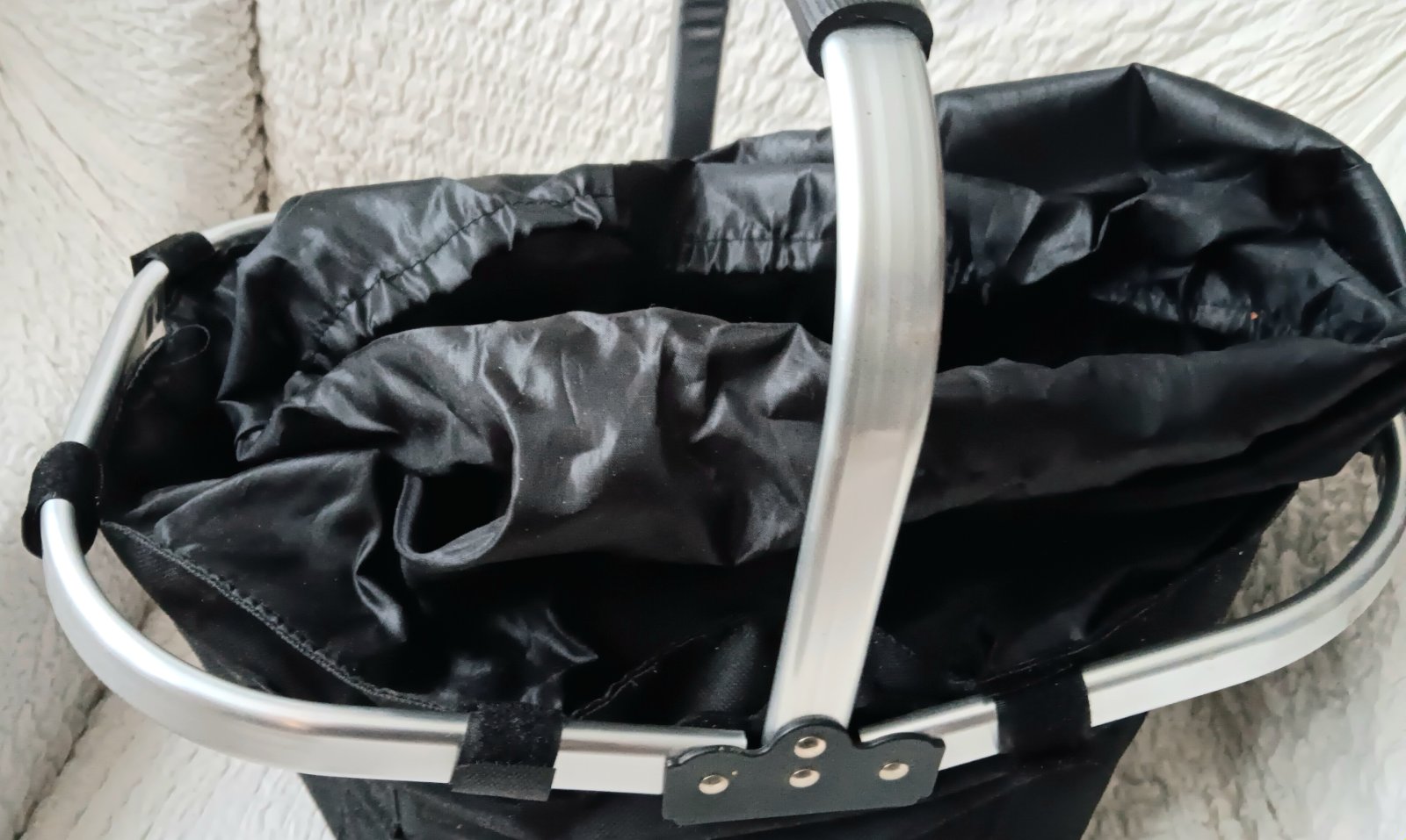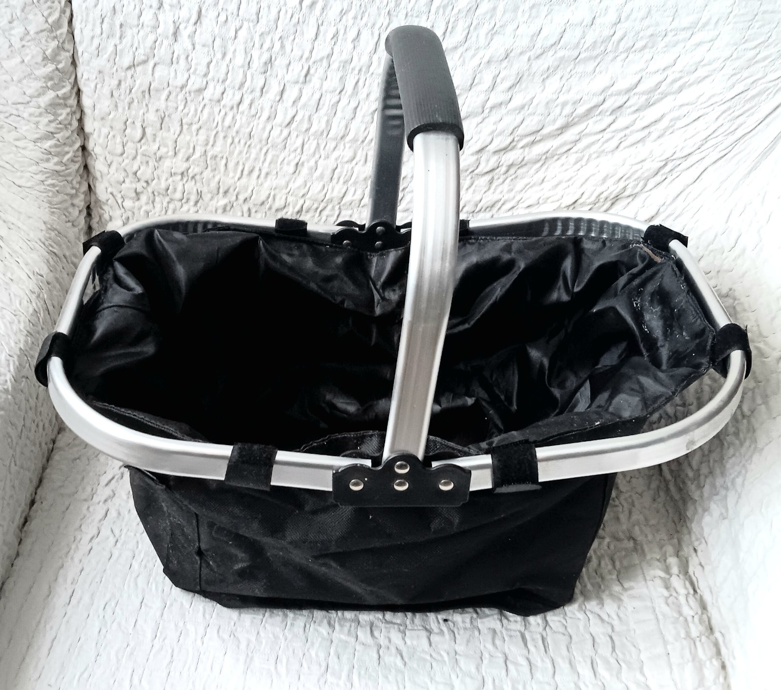 Predám dávno používanú skladaciu nákupnú tašku/alebo na piknik, alebo na huby/,s hliníkovým rámom, v dobrom stave....už nevyužijeme....na spodu 6 malých nožičiek...merané vrch - 43x27cm výška 22cm....cena plus poštovné