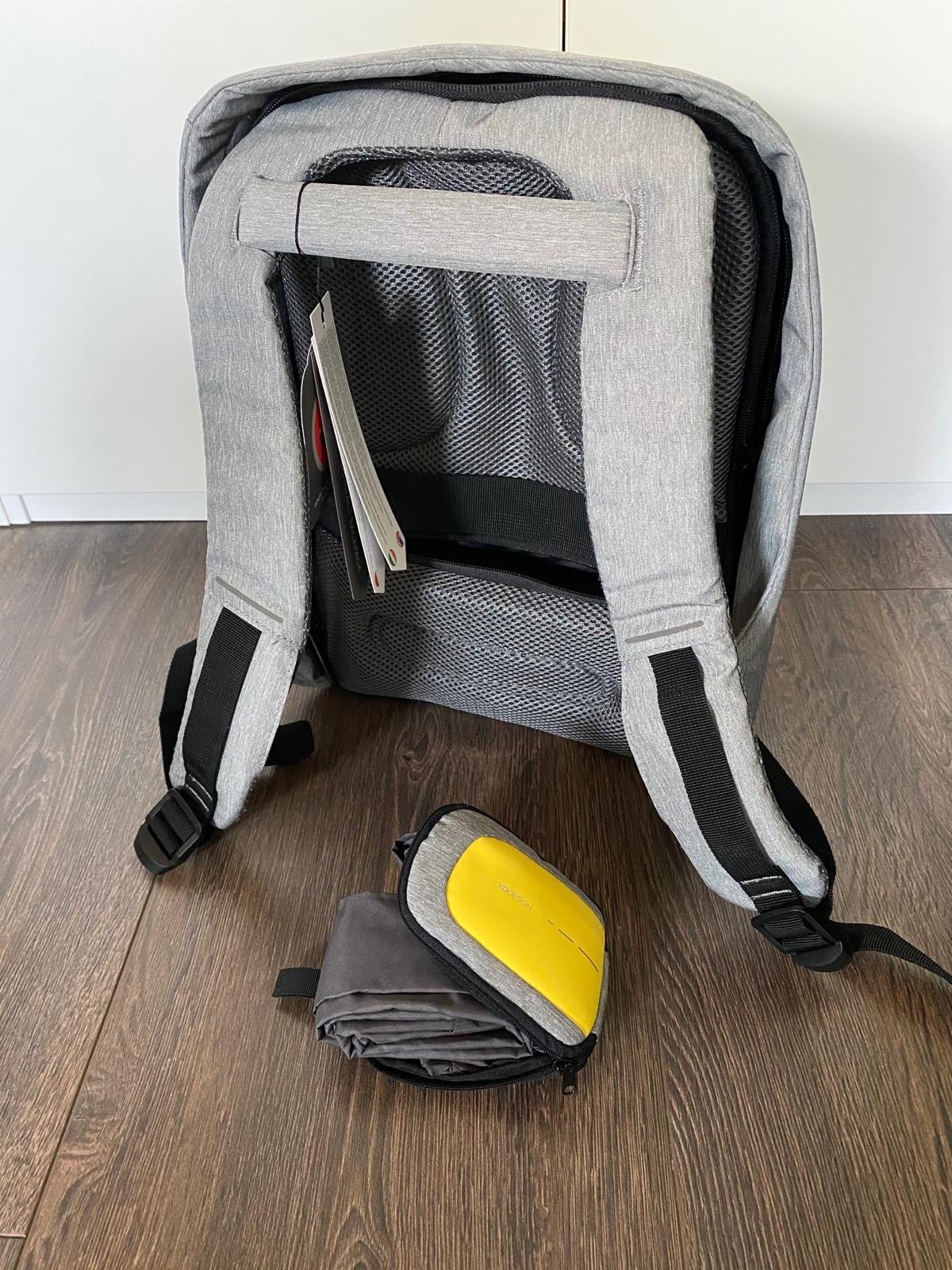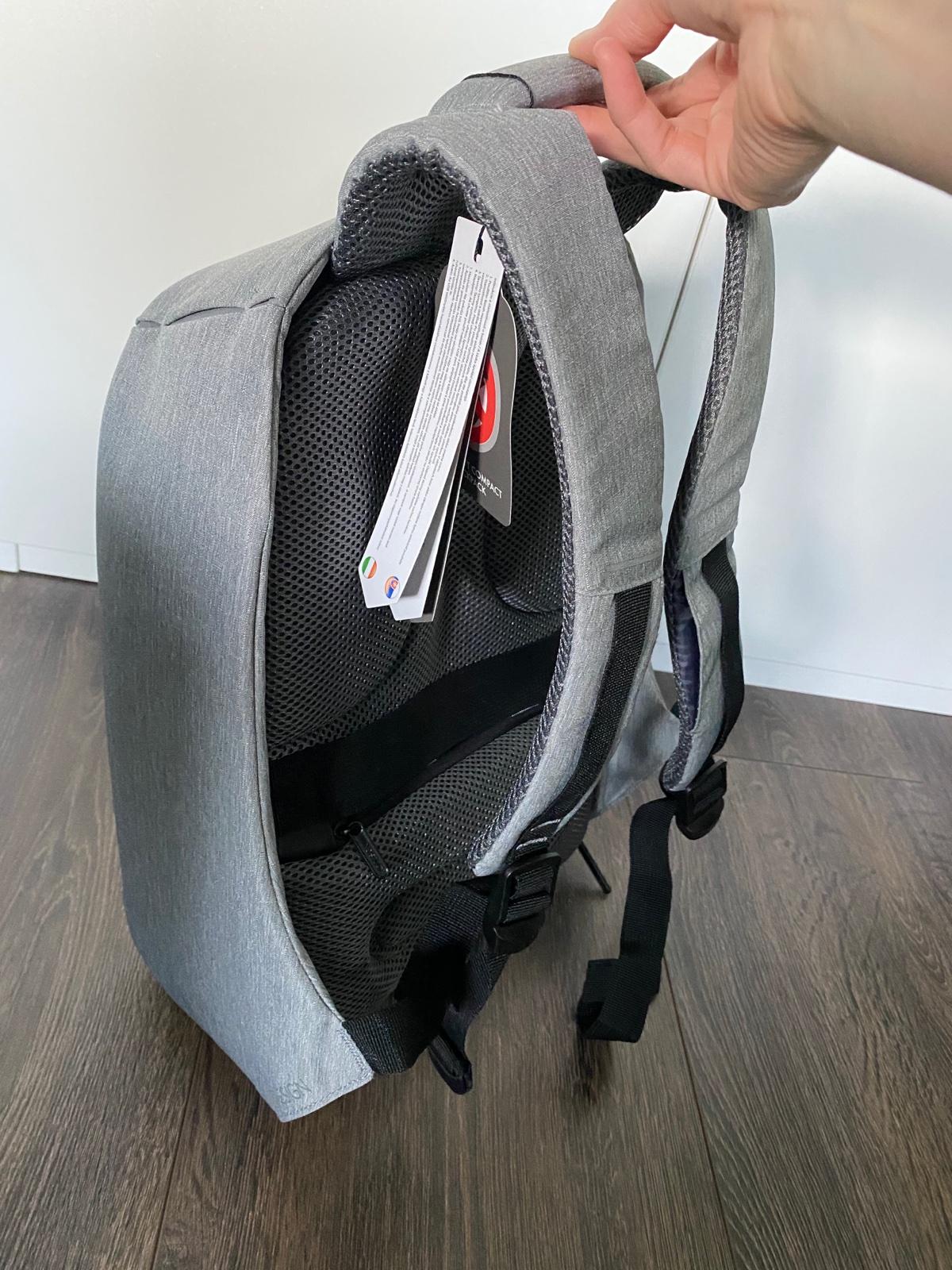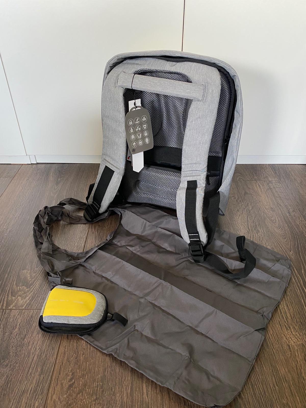 🔒📱💻💶🔒 Predám nový bezpečnostný batoh s množstvom priečinkov + USB napájanie telefónu/tabletu + vodovzdorný obal na batoh + nákupná taška v praktickom púzdre.