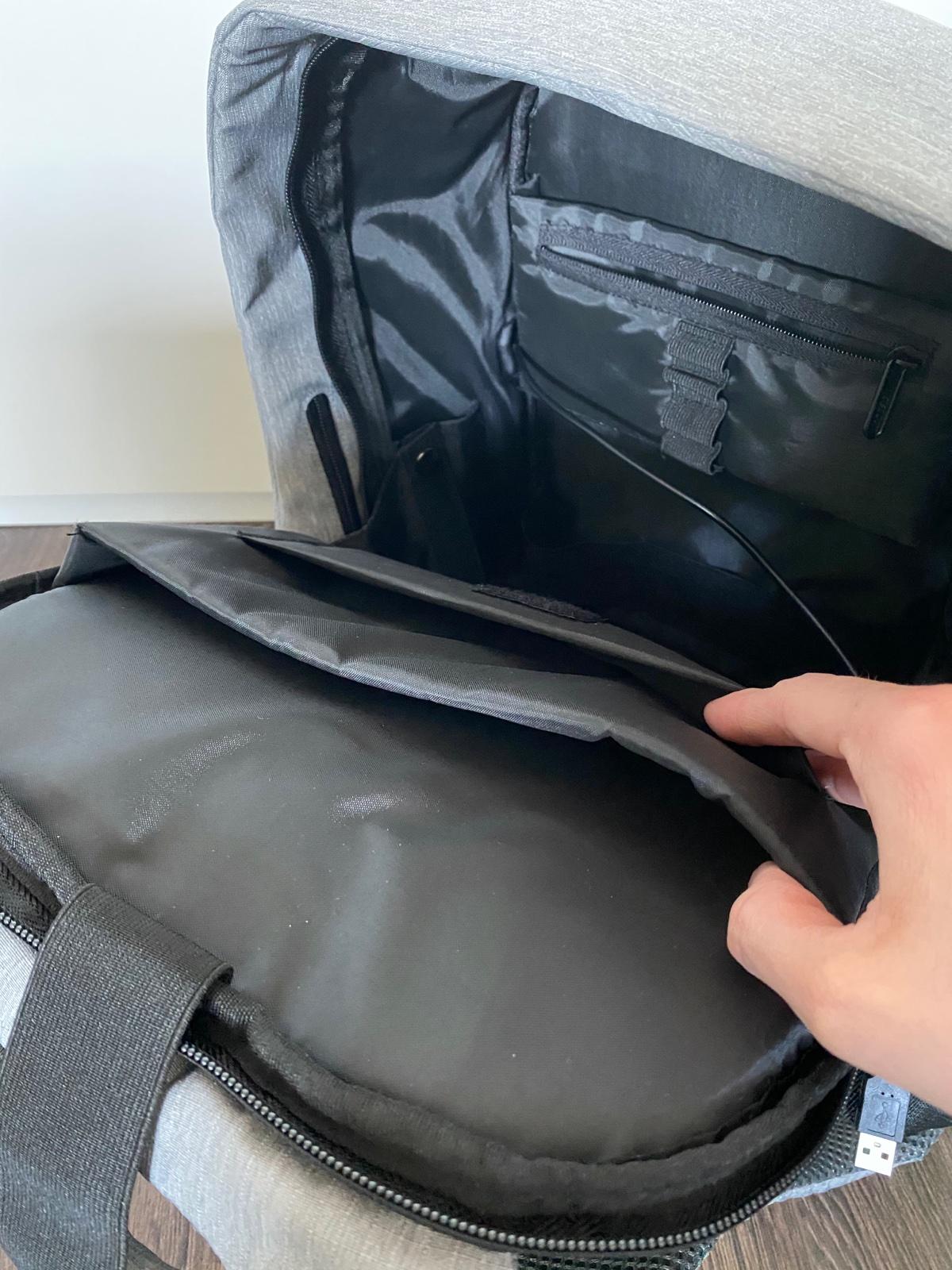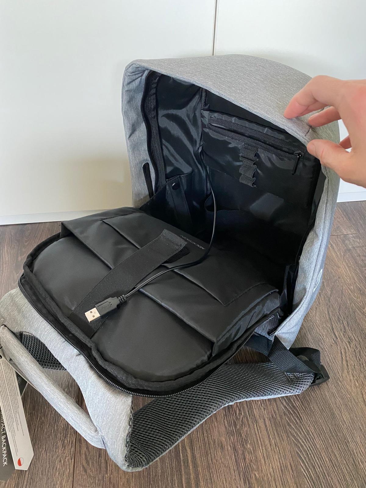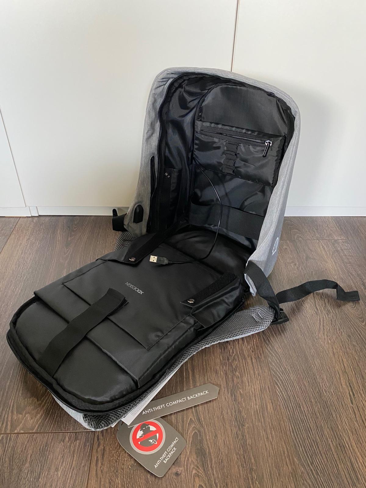 🔒📱💻💶🔒 Predám nový bezpečnostný batoh s množstvom priečinkov + USB napájanie telefónu/tabletu + vodovzdorný obal na batoh + nákupná taška v praktickom púzdre.