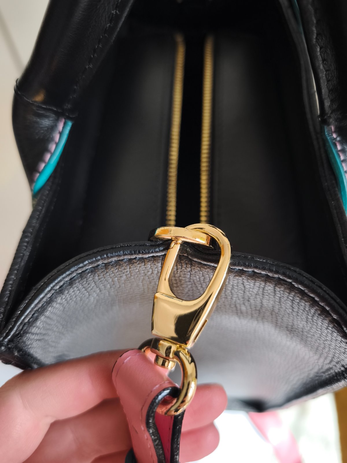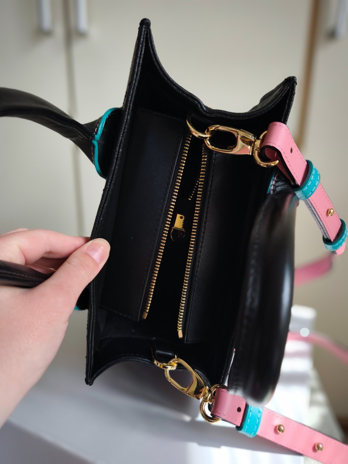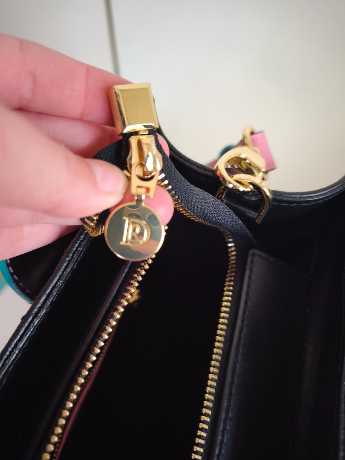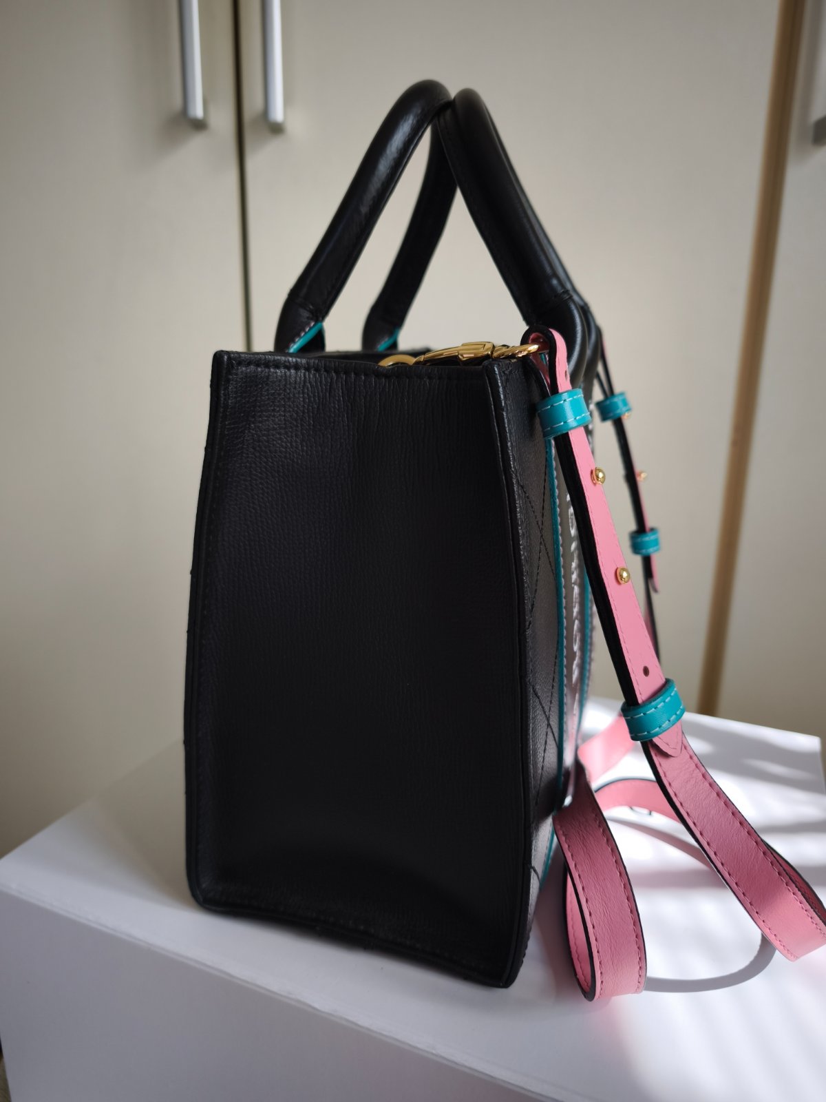 Krásne drží tvar, je k nej kožený ružový popruh a dustbag.