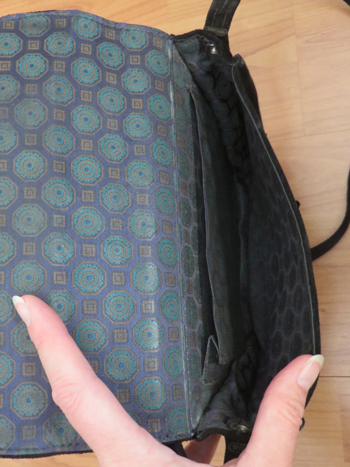 Predám túto čiernu kabelku z brúsenej kože, vhodnú aj do divadla pre mladú slečnu. Kabelka je okrem ošuchnutia na spodnej časti (viď foto) v dobrom stave bez iných poškodení. Ošuchnutie na fotke je priblížené, v skutočnosti nie je také viditeľné.
