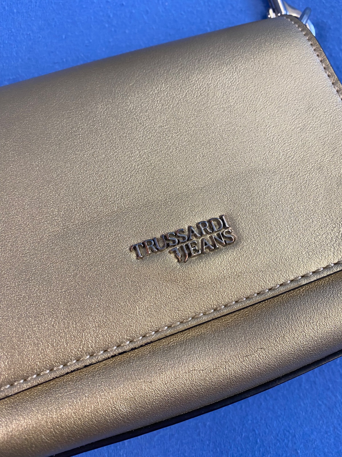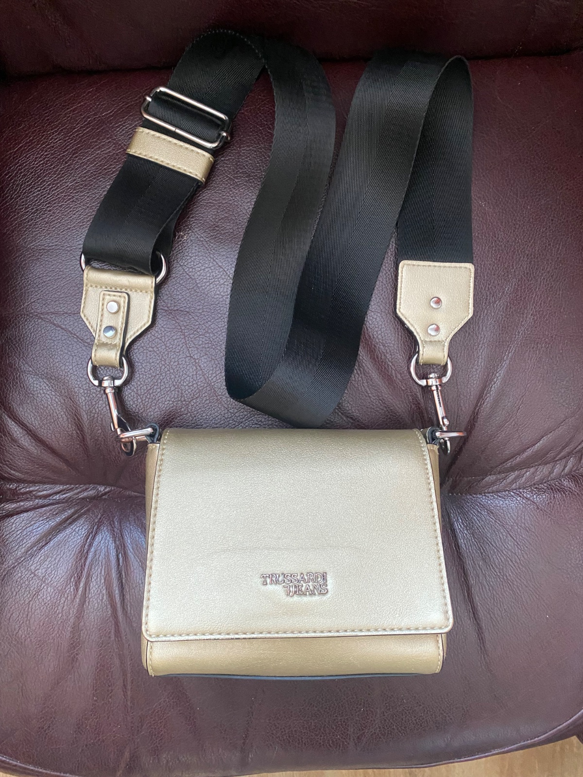 Original Trussardi Jeans crossbody kabelka v zlatej farbe.