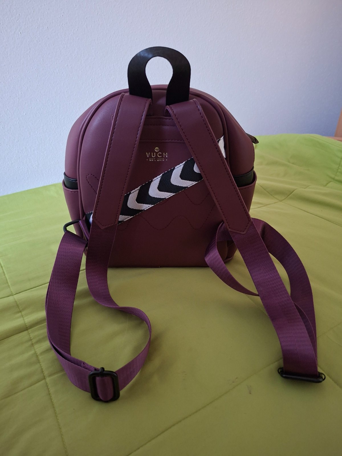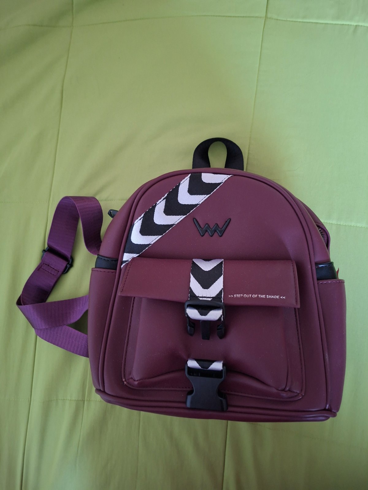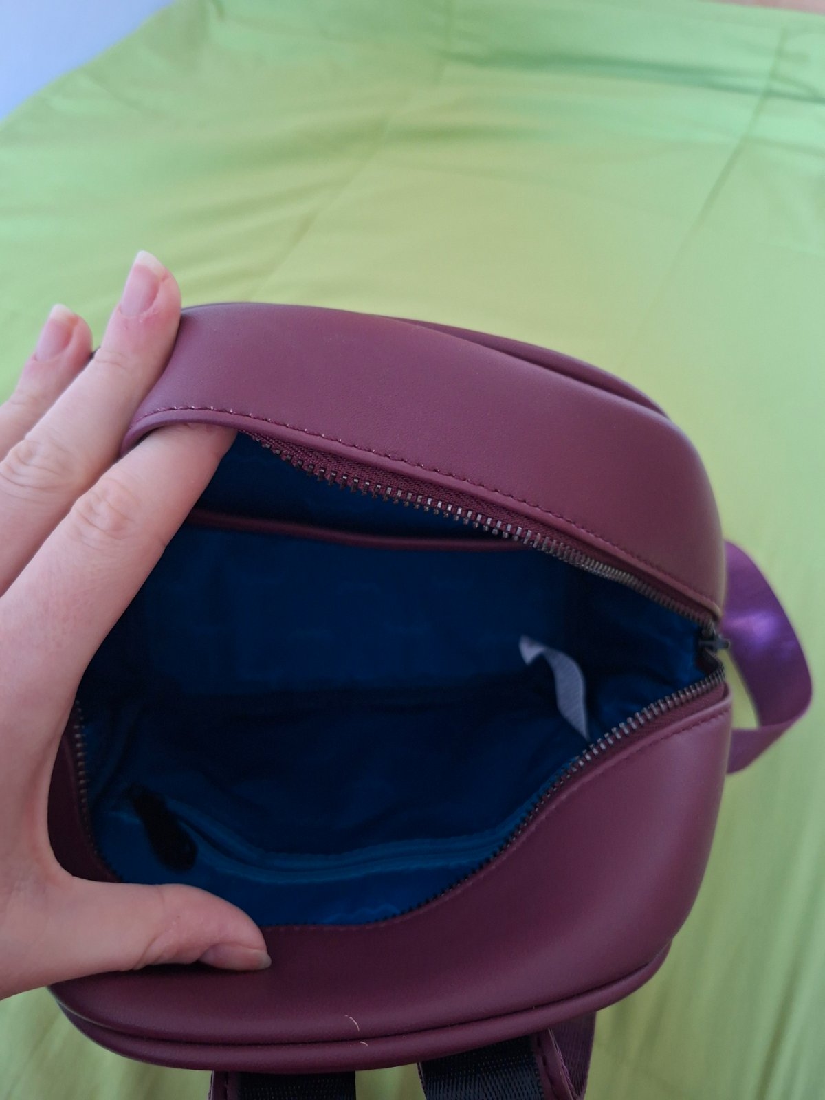 Rozmery 23 x 27 cm, nastaviteľná dĺžka popruhov, farba je niečo medzi bordovou a fialovou, nešlo mi to lepšie odfotiť (pridávam viacero fotiek na ukážku). Už som ho ponosila tak posúvam ďalej za sy...