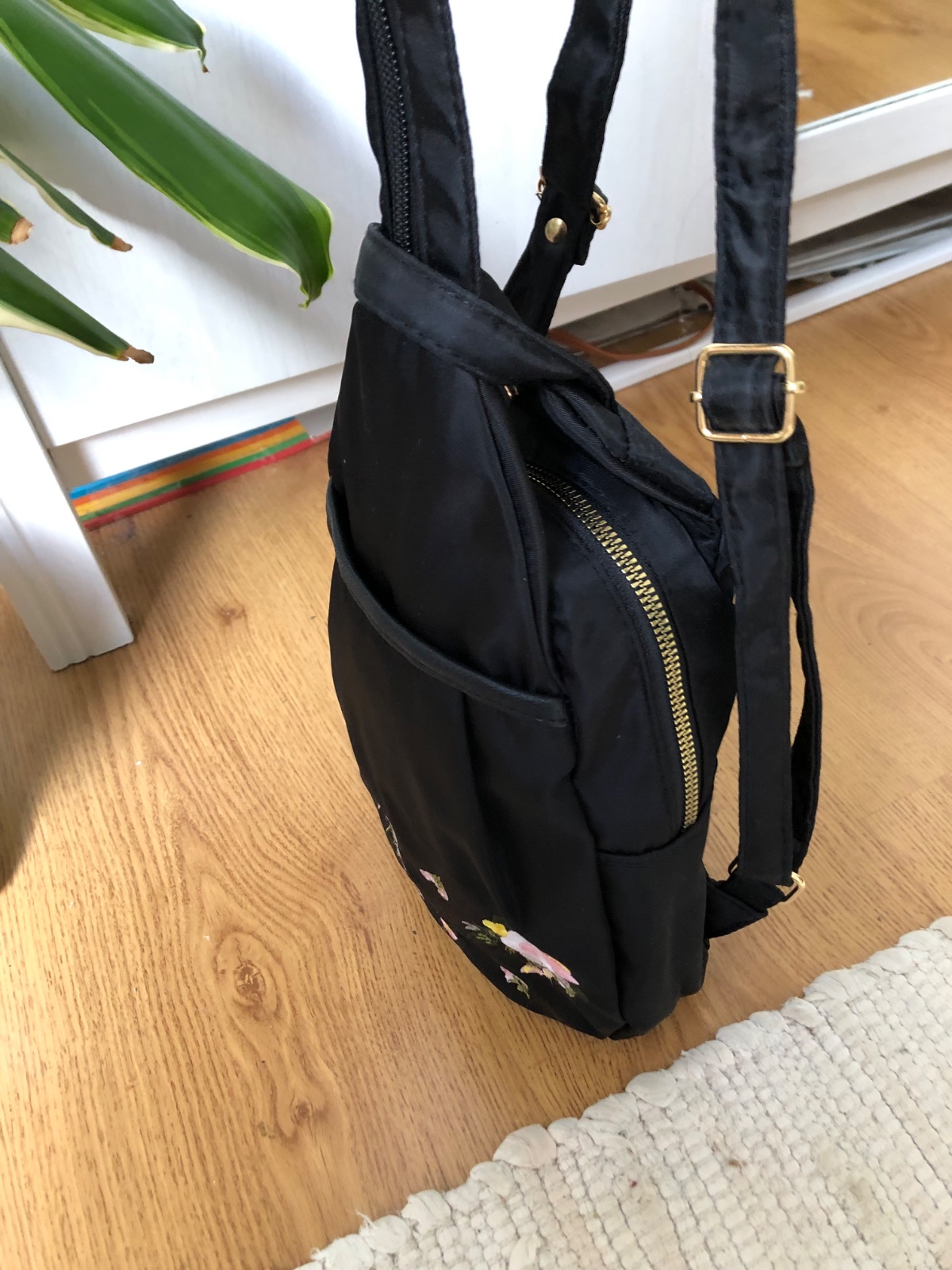 Predam mini ruksak Zara po mojej dcere,na zips + srdiecko aj hviezdicka tiez na zips.malo noseny,ale aj napriek tomu na par miestach popukala vrchna vrstva,vidno na foto.dlzka ruksaku je cca 23 cm,...