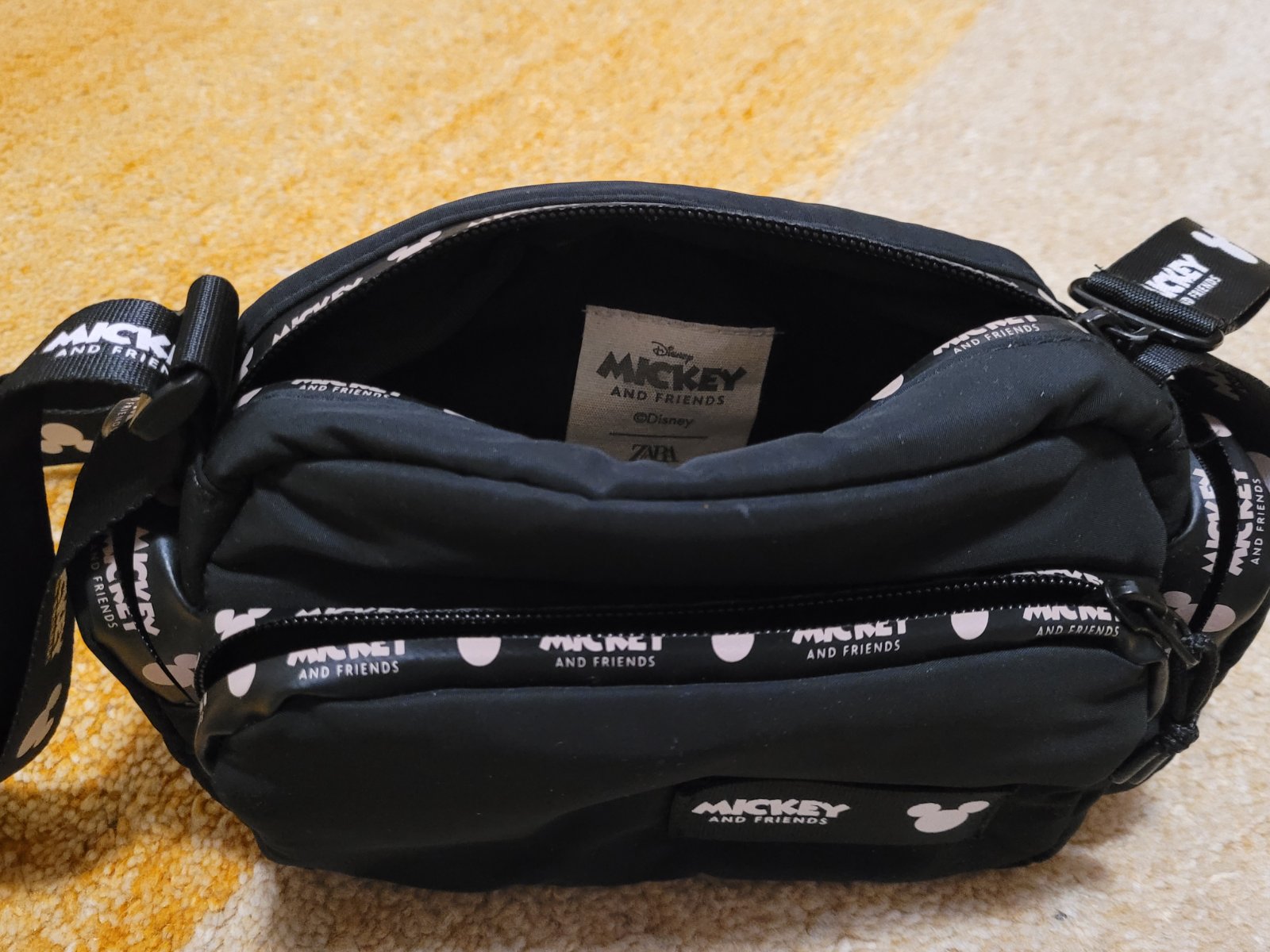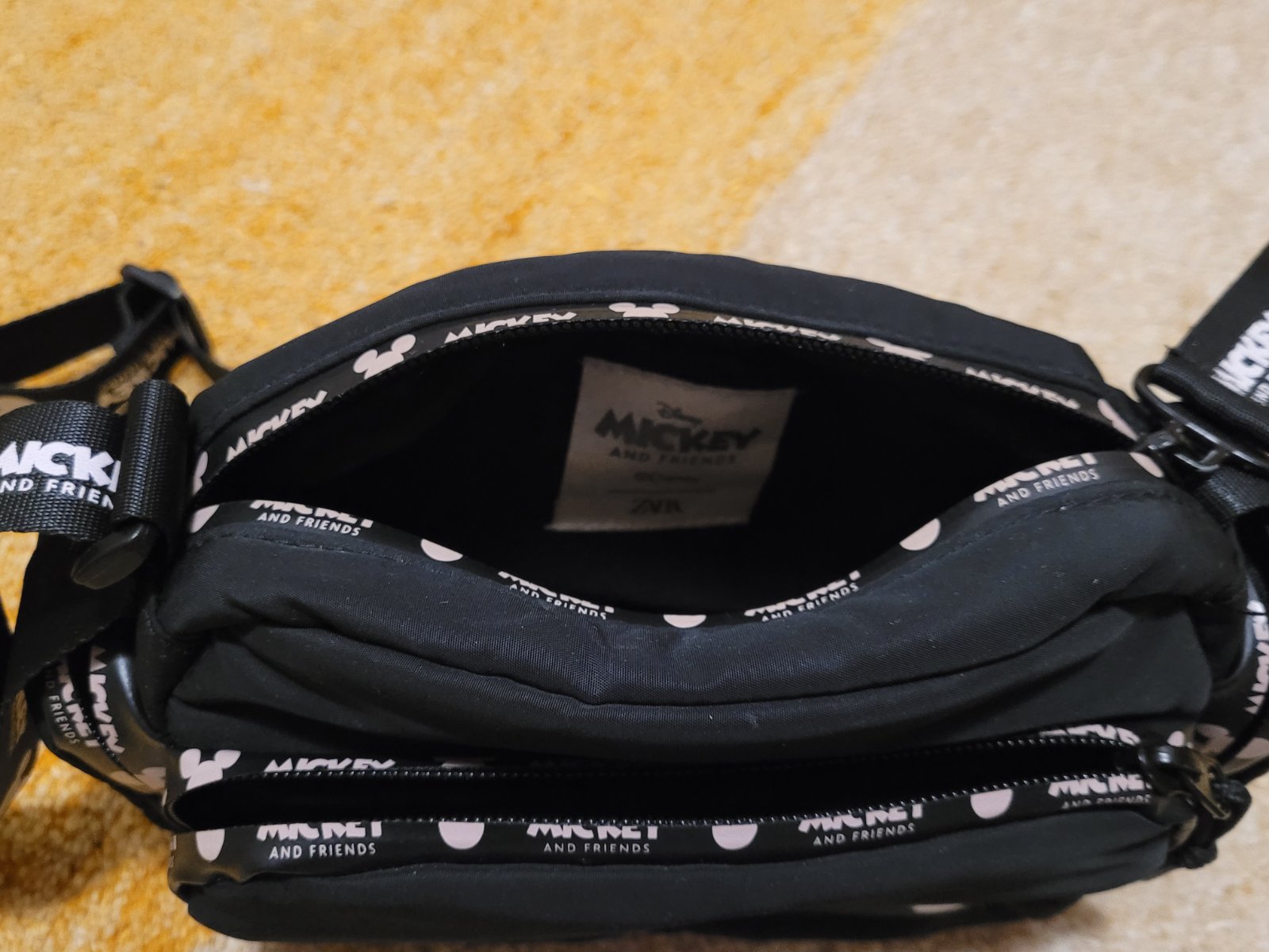 Čierna kabelka zn. Zara, zriedka nosená, materiál polyester,rozmery ŠxVxH:16x13x8cm, rozmer naviac sú bočné vrecká. Uzáver na zips.