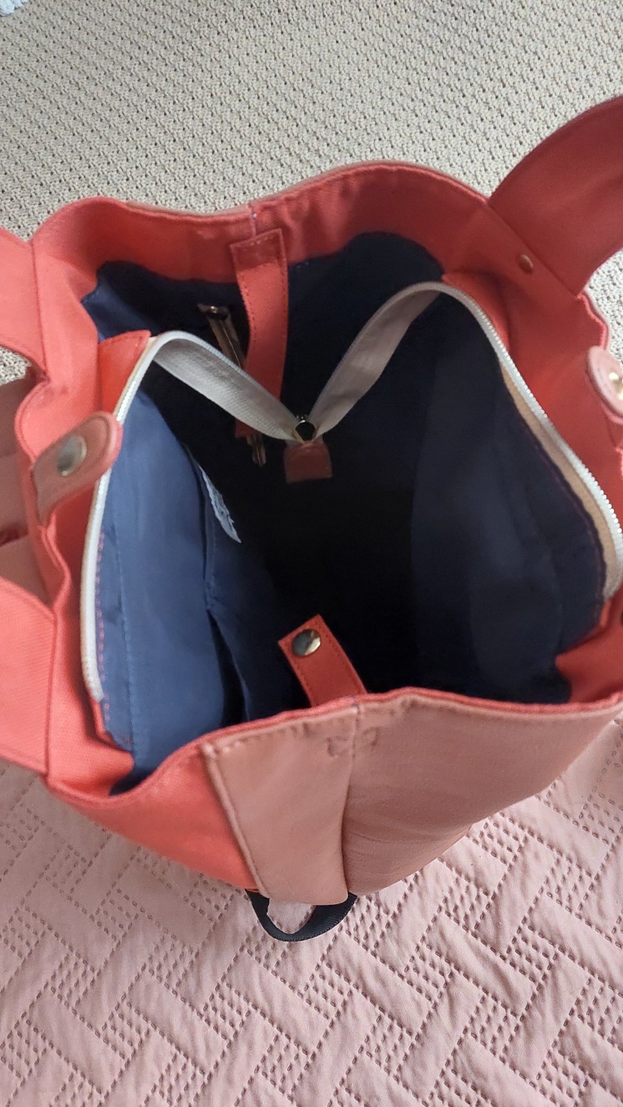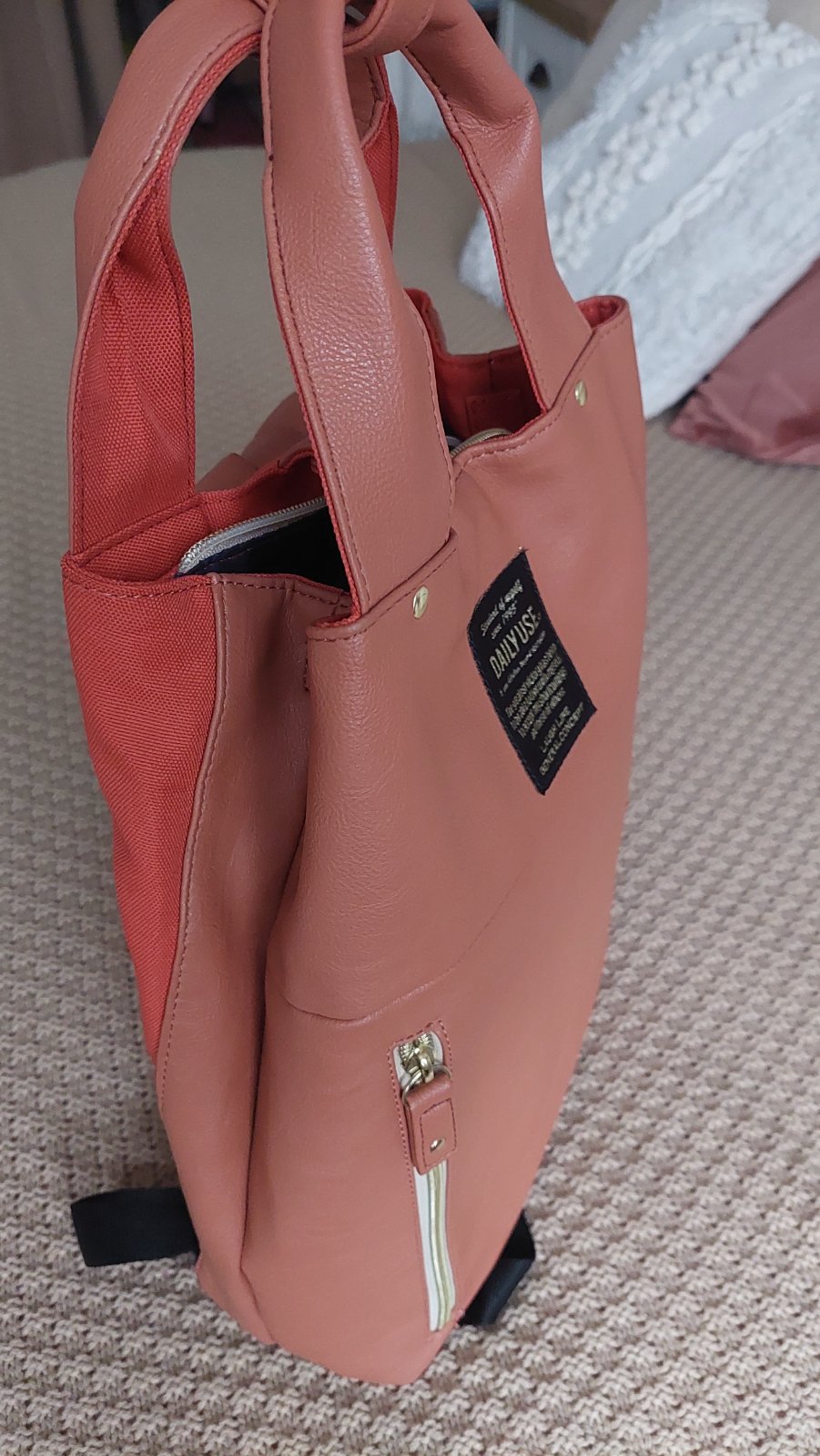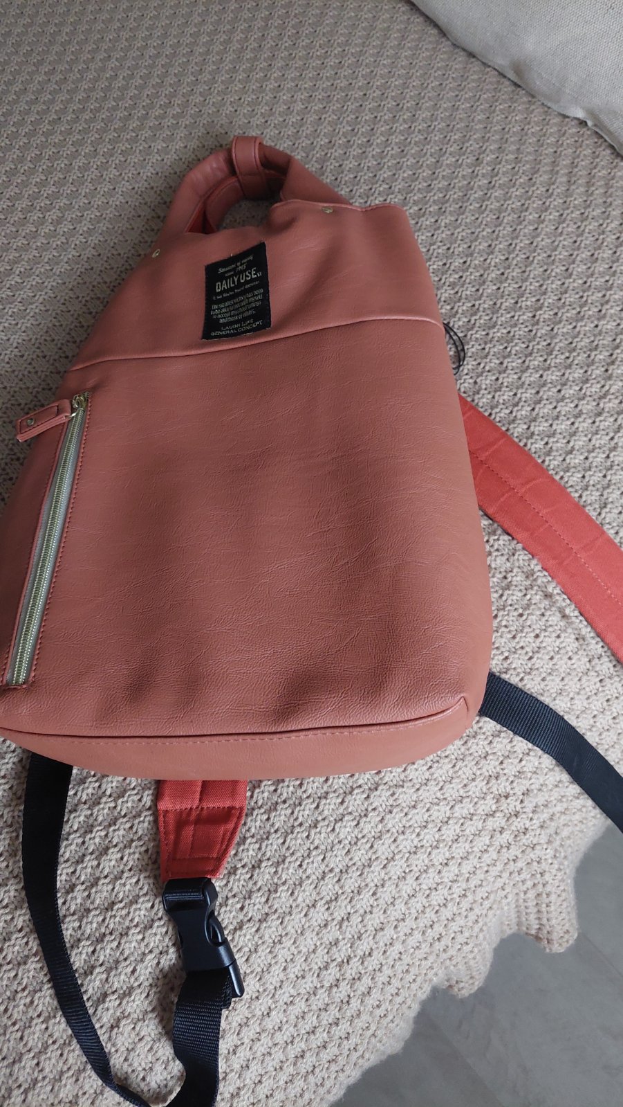 Jeden krát použitý ruksak, svetlej broskinkovej farby, v top stave Výška ruksaku 33 CM