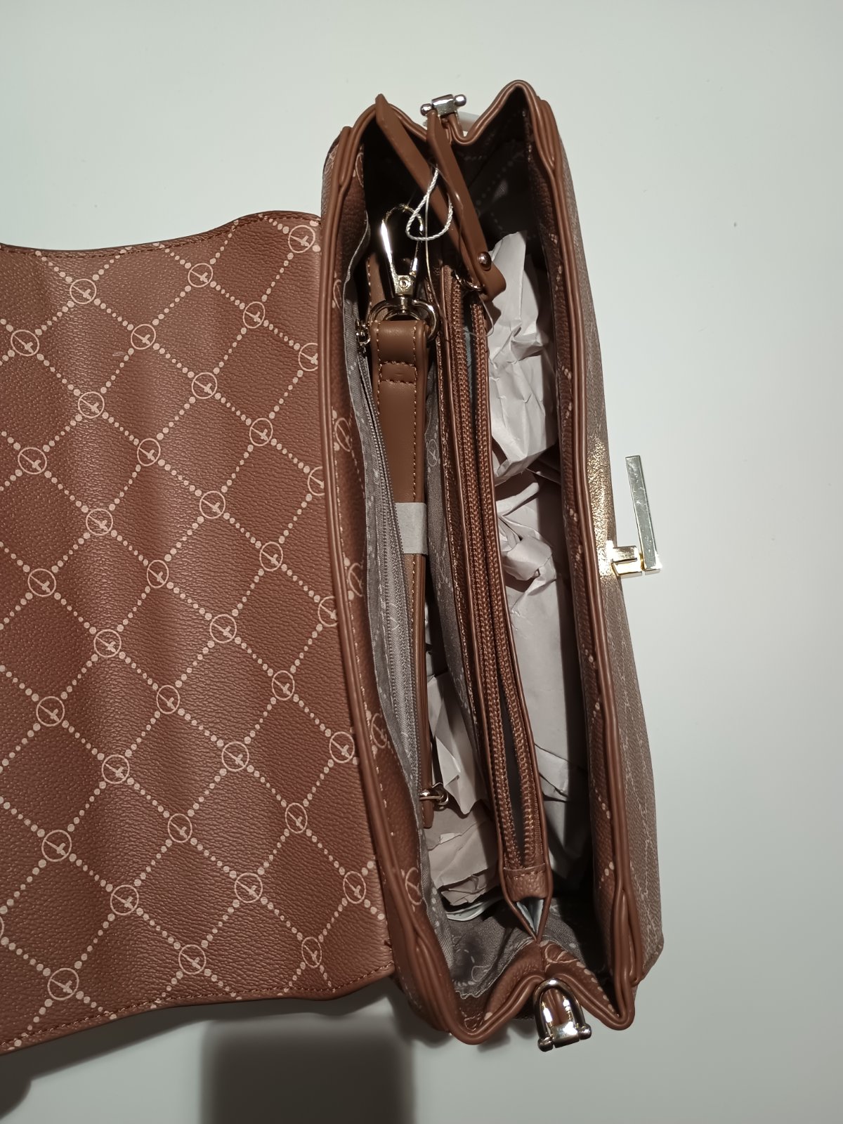 Dámska kabelka menšieho rozmeru cez rameno od značky Tamaris. Na zvršku kabelky nájdete moderný biely vzor a ozdobnú sponu. Kabelku vďaka farbe a tvaru ľahko skombinujete. Vo vnútri kabelky sa nachádza hlavná priehradka a 2 vnútorné vrecká na zips. Na vonkajšej strane nájdete vrecko na zips.Kabelka je vyrobená zo syntetickej kože a zapína sa pomocou kovovej spony.