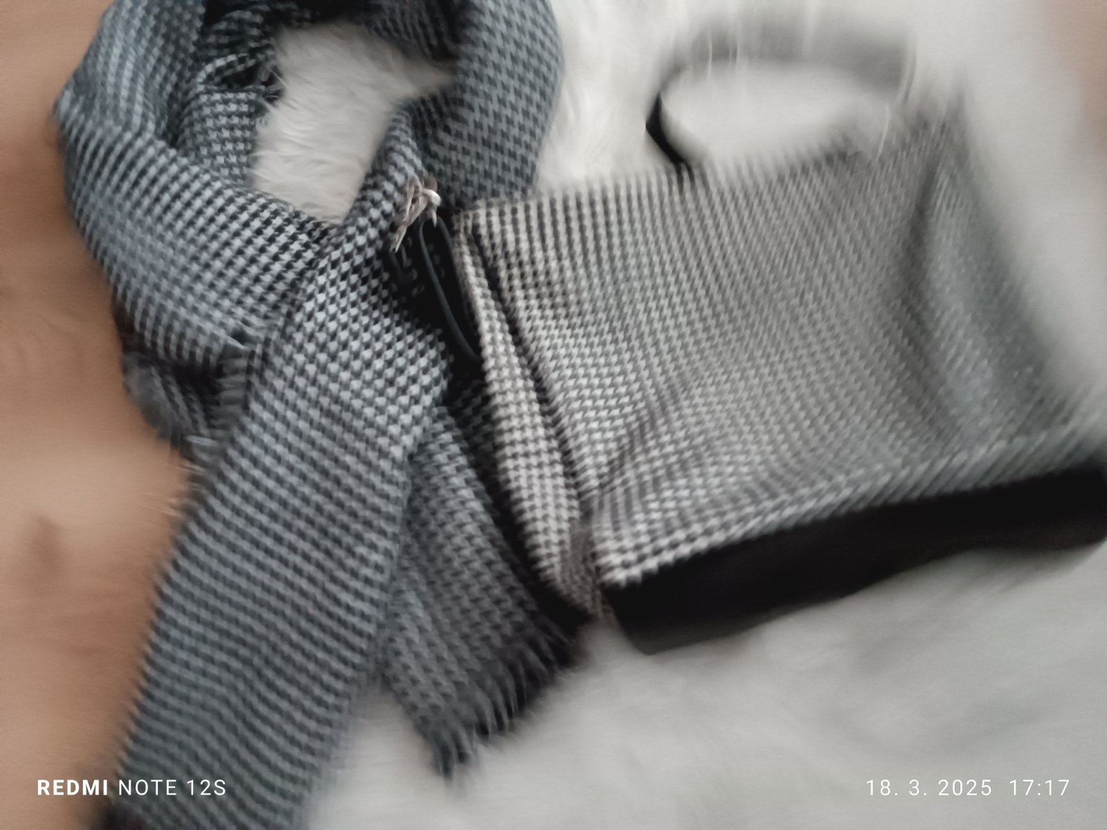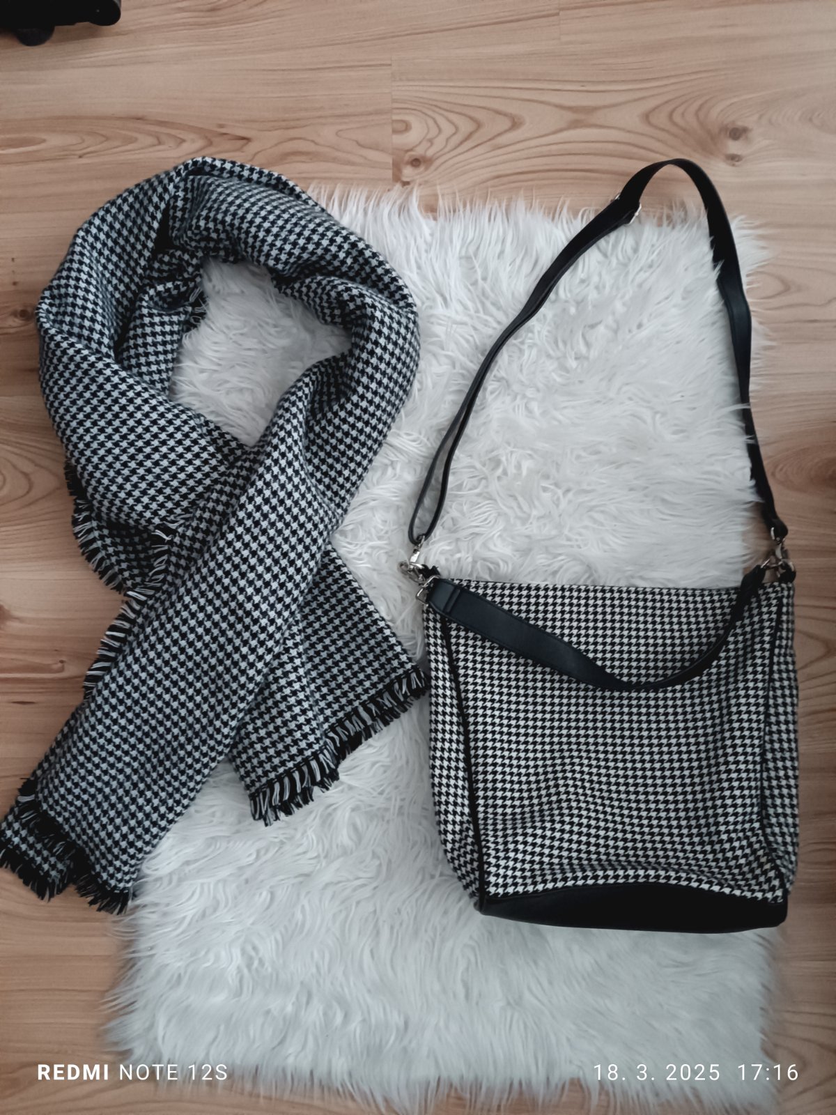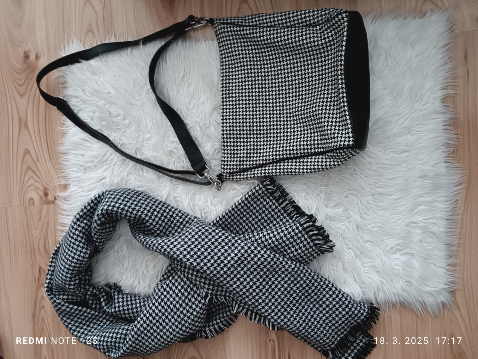Nosená,bez akýchkoľvek poškodení, mäkká, pohodlná, ľahká, mám k nej aj šál,vo vnútri menšie priehradky.