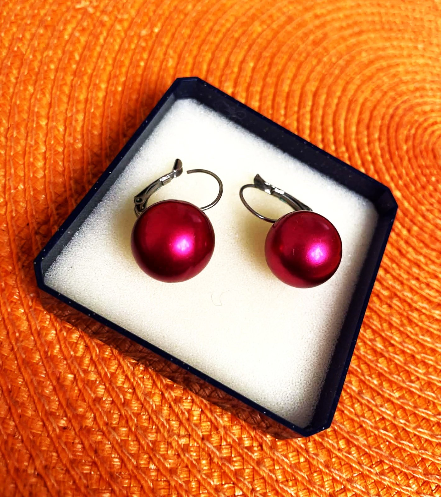 náušnice,metalizovaná farba - ako na obrázku,je to ružovo bordová farba s lesklým povrchom.