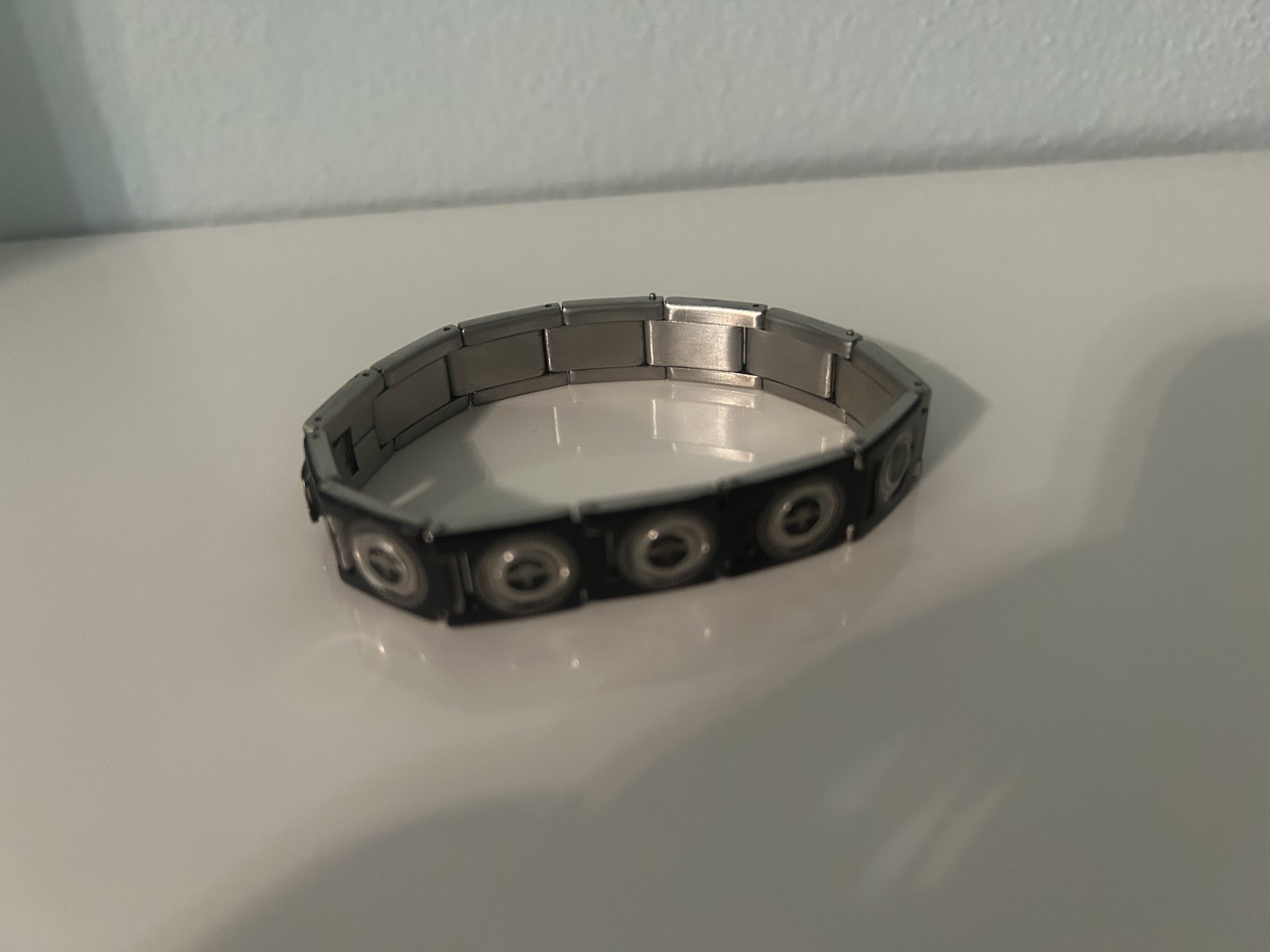 kovový náramok z dielikov- na zapínanie- obvod 20cm, nenosený
