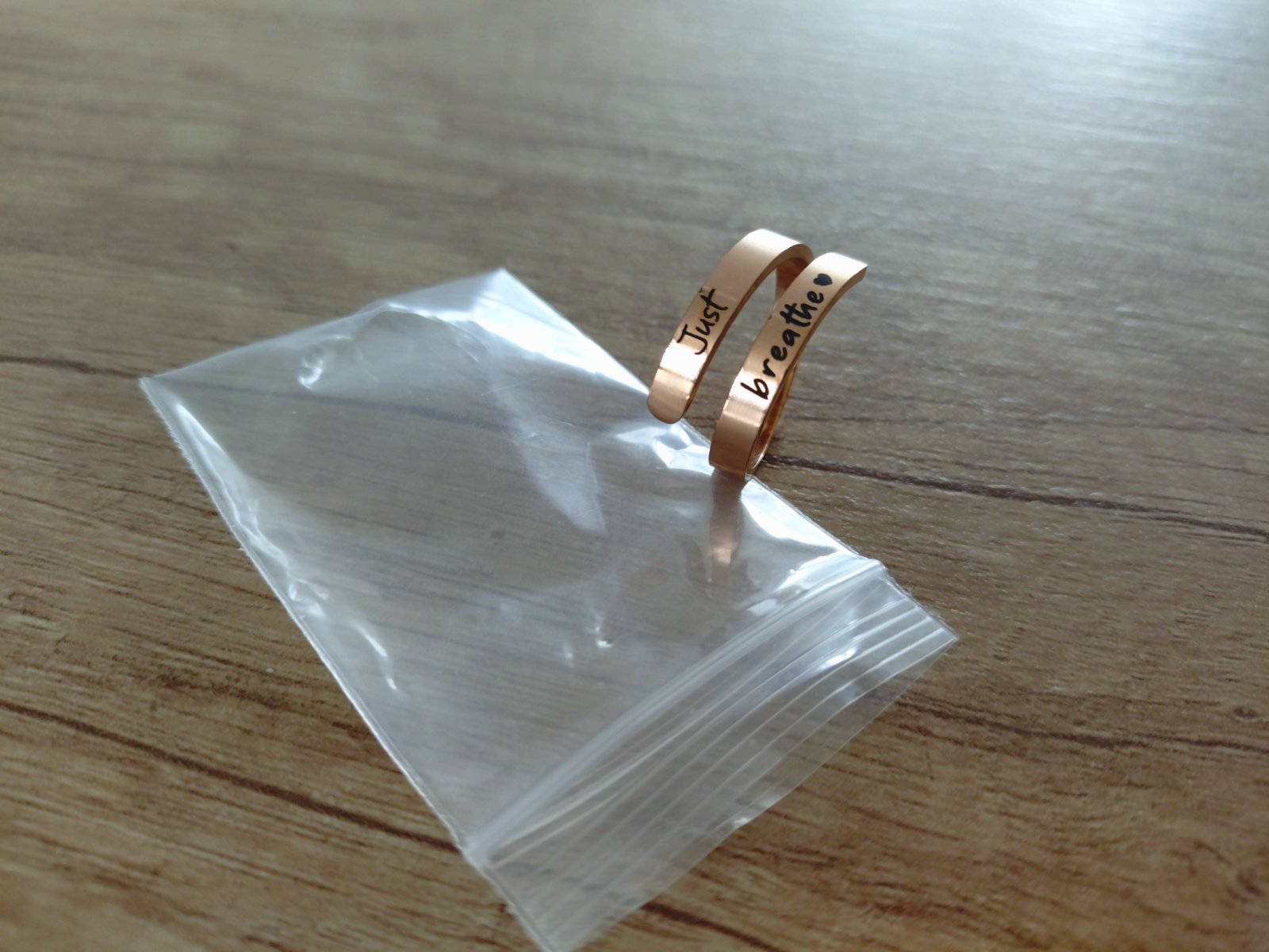 Nastaviteľný nerezový prsteň "Just Breathe"