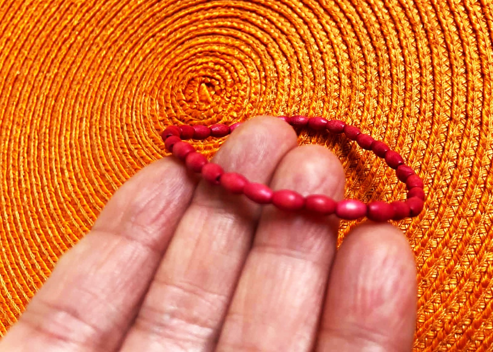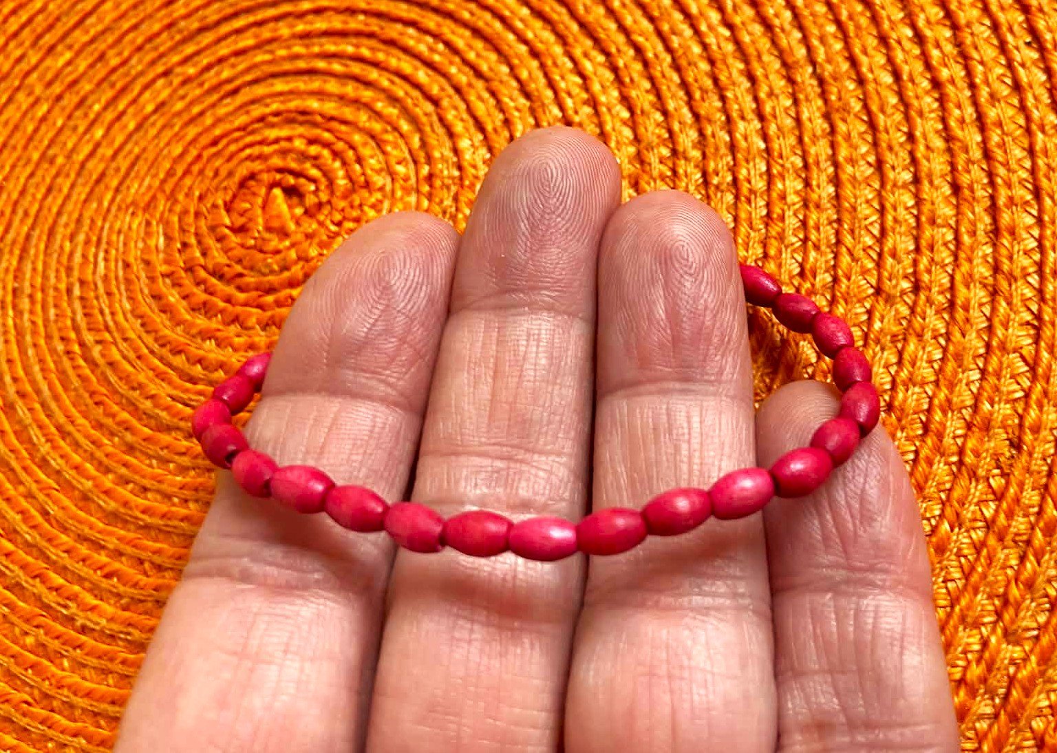 jednoduchý naturálny drevený - na gumičku,ja som ich nosila spolu s týmto - viď posl. foto