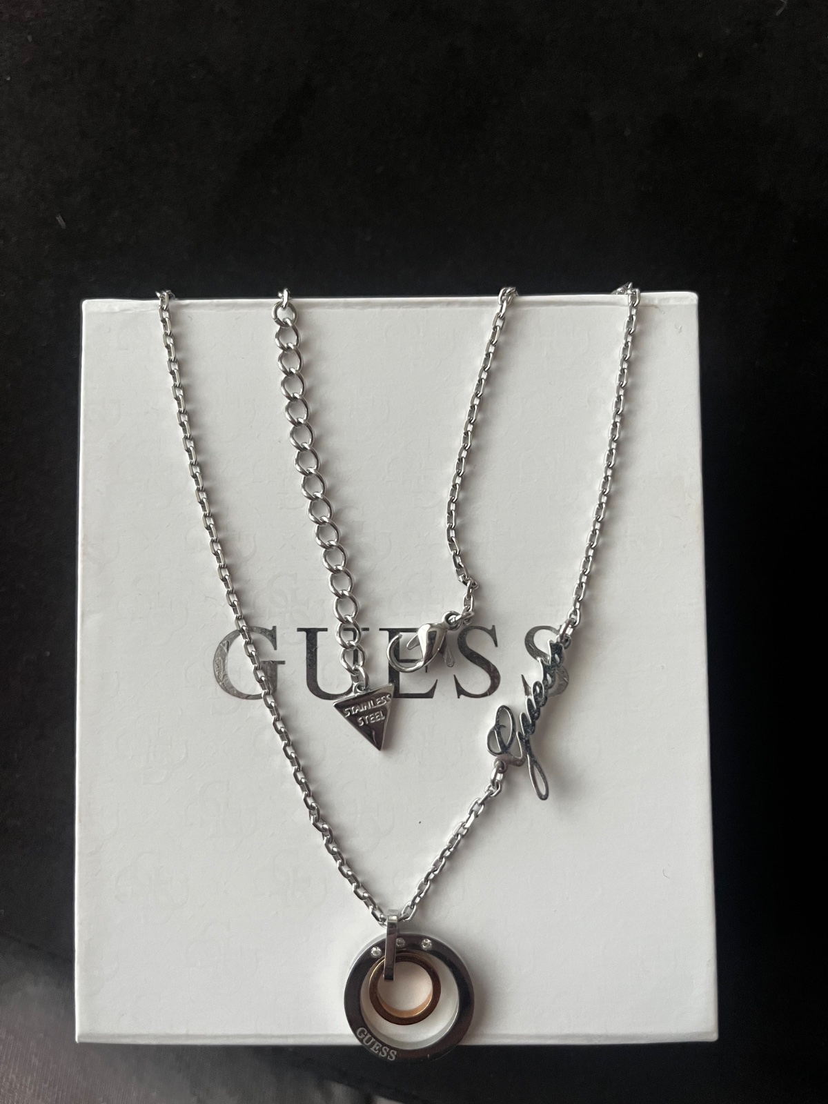 Skladom⚜️Luxusný náhrdelník originál Guess aj s krabičkou a vrecúškom, vhodný aj ako darček👌 V zlatom a striebornom prevedení. Pc 59€☝️