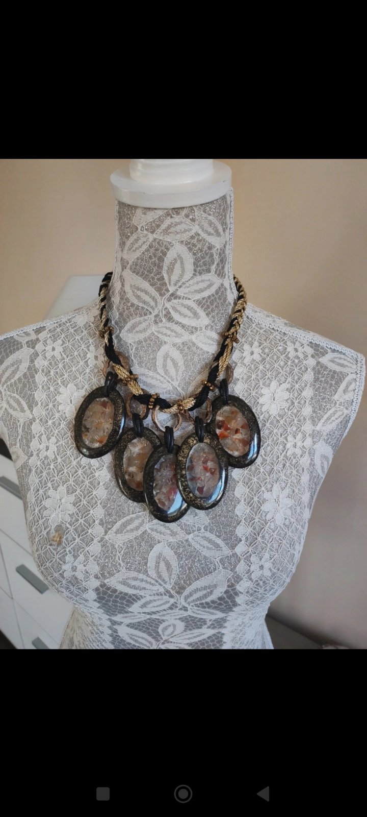 Náhrdelník, myslím, že je to kameň tigrie oko, asi 1-2x bol na krku, inak nenosený. Veľmi dobrý stav.