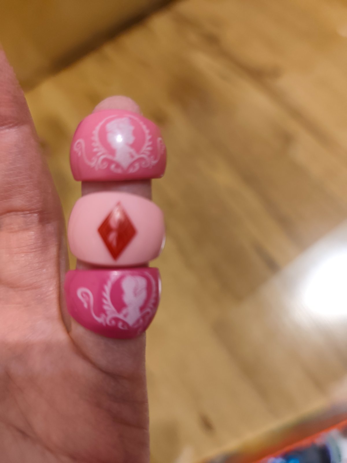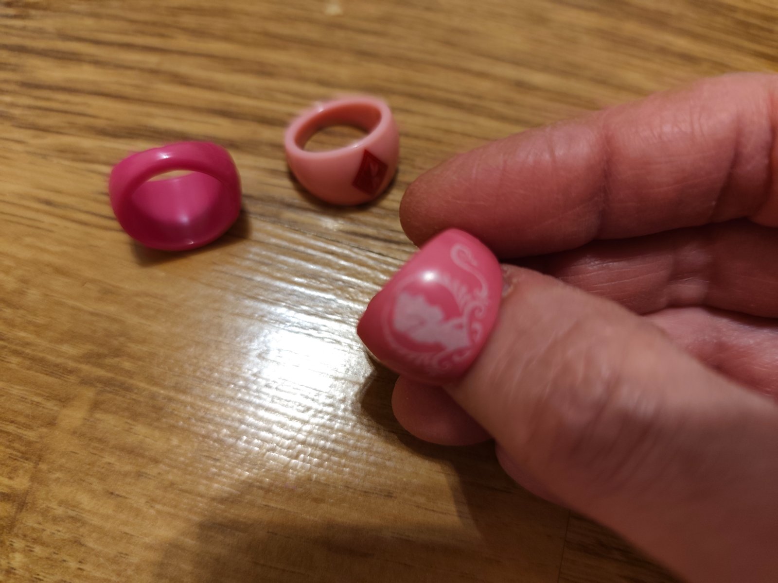 Kinder ruzove dievcenske , prstene komplet s papierikom, len otvorene