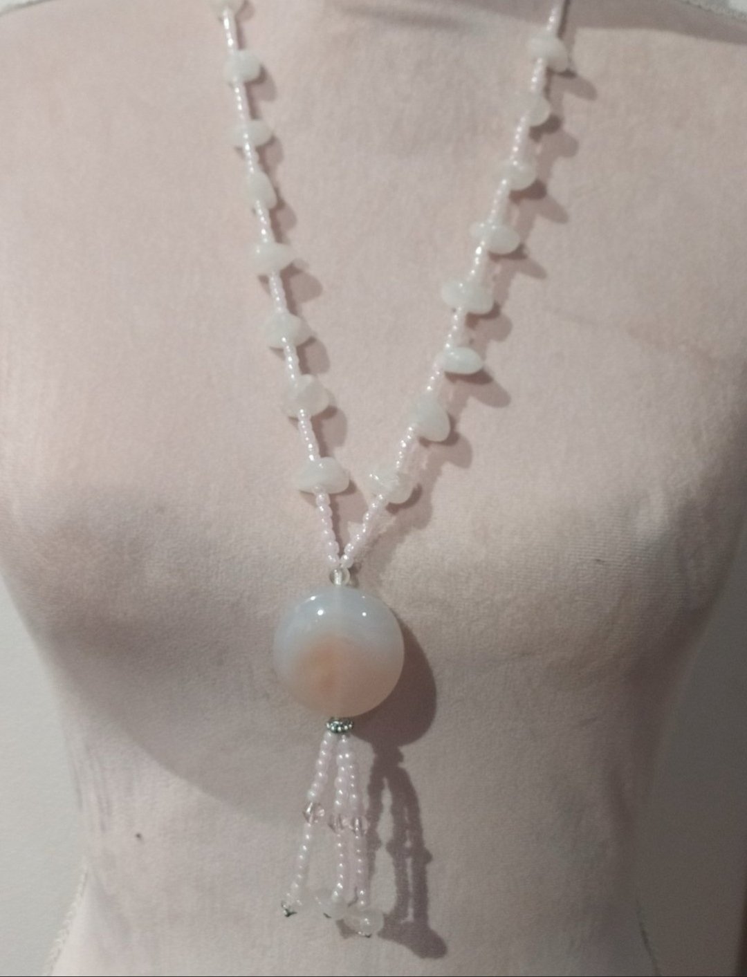 Originálny šperk z polodrahokamov ruženín, jaspis, granát, mesačný kameň. Zapínanie je bižutérne, striebornej farby, s predlžovacou retiazkou na prispôsobenie dĺžky. Dĺžka náhrdelníka bez predĺženi...