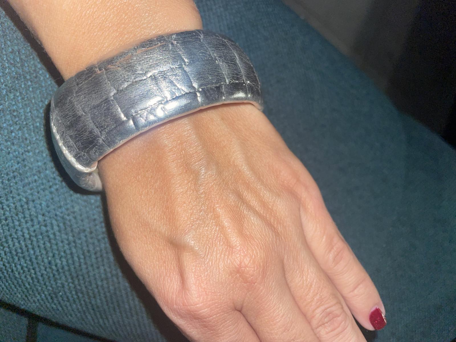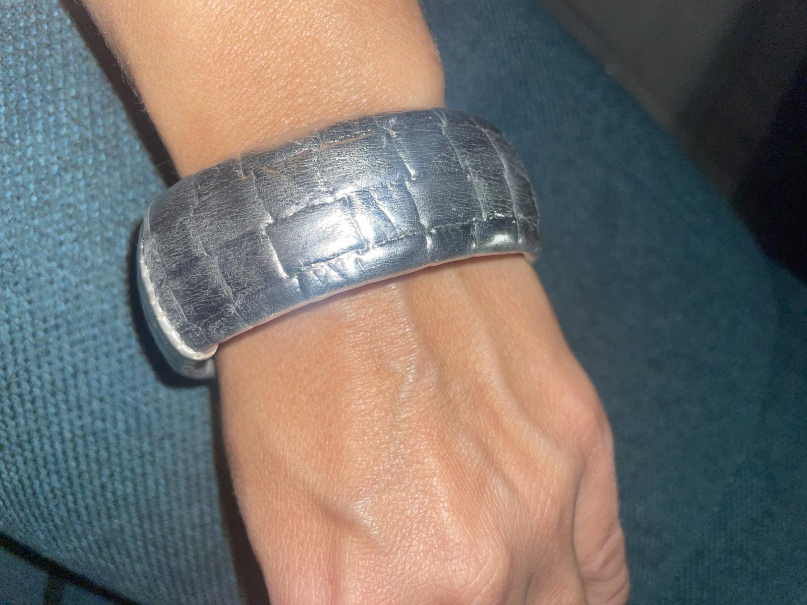 Výborný stav, bižutéria, imitácia kože v striebornom kove