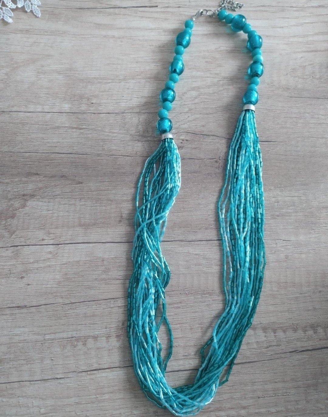 náhrdelník, drevené gorálky v kombinácii s priehľadnými