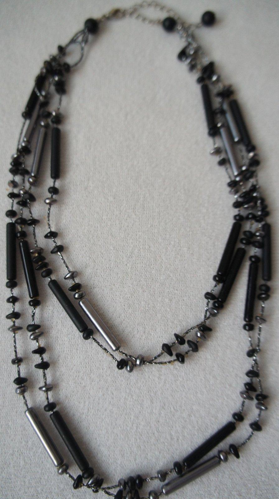 Predám bižu náhrdelník. Farba čierna - strieborná. Dĺžka v zapnutom voľne visiacom stave cca 21 - 26 cm (plus - mínus sa to dá ešte regulovať pri zapínaní na háčik).