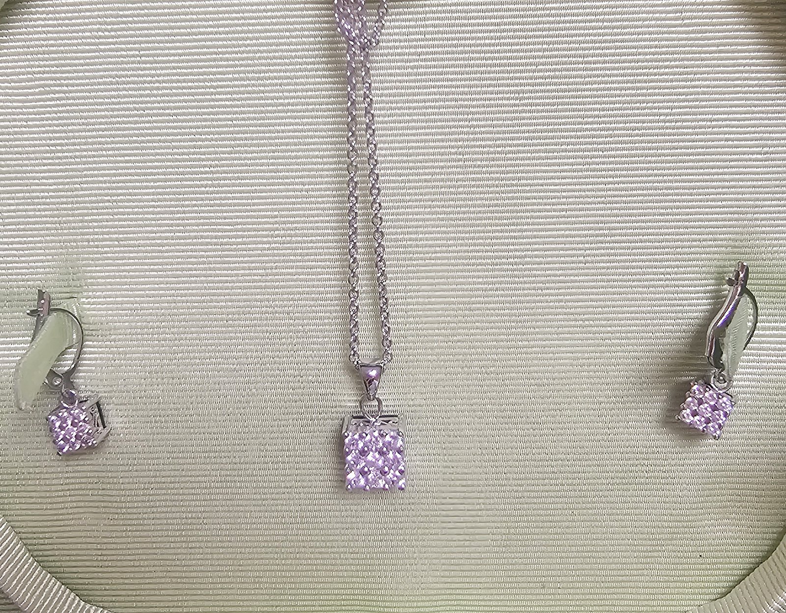 Nové. Set sa dá nosiť z oboch strán. Je pokovaný rhodiom a vsádzaný s CZ kryštálmi . Pokovanie rhodiom zlepšuje vzhľad a životnosť šperku. Dodávané v darčekovej krabičke.