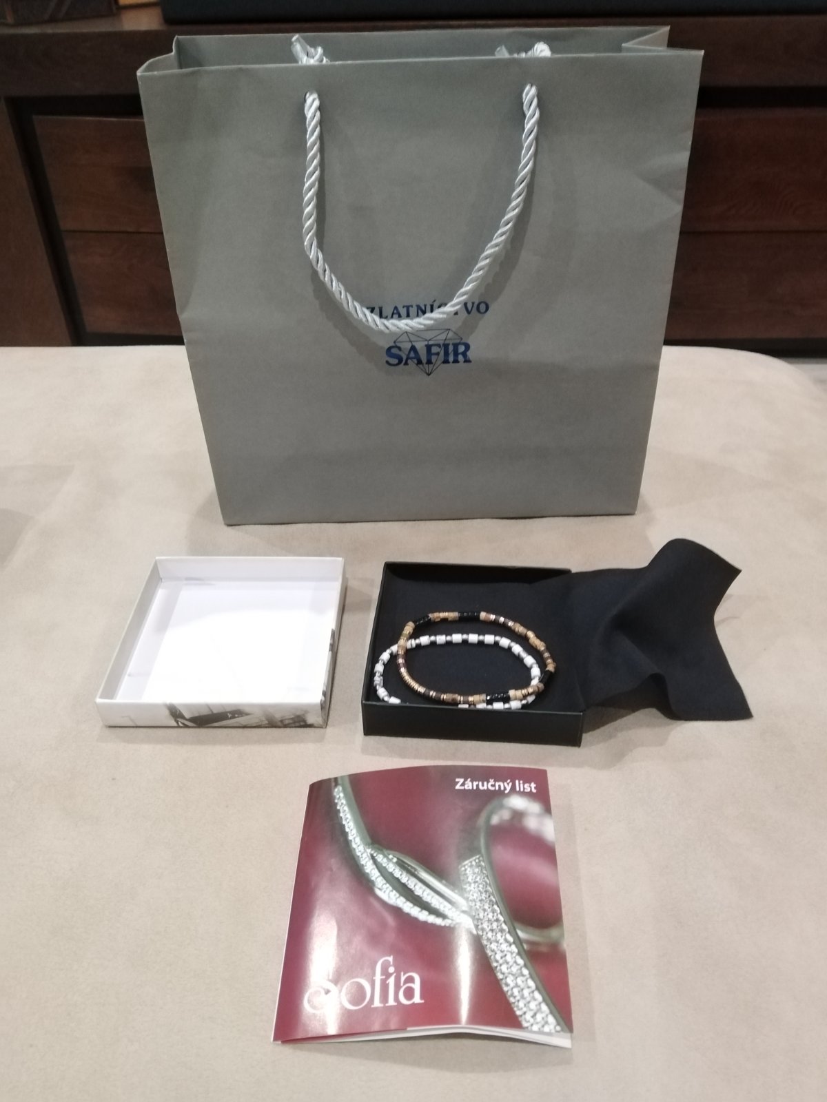 Krásne náramky, originál, kupované v zlatníctvo Safir, záručný list + bloček, kúpené dňa 11.06.2025 v kamennej predajni Safir Aupark, záručný list, všetko v originál balení tak, ako bolo kúpene. Nové nikdy nenosené. Cena pri kúpe v predajni 64 eur, teraz za super cenu 30e. Predám resp. Posielam tak ako bolo kúpené v originál balení s originál taškou. Ideálny darček na Vianoce.