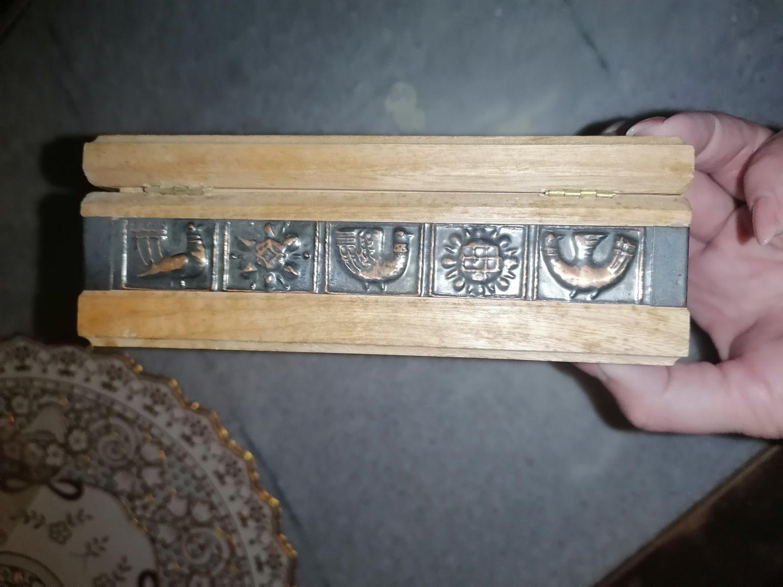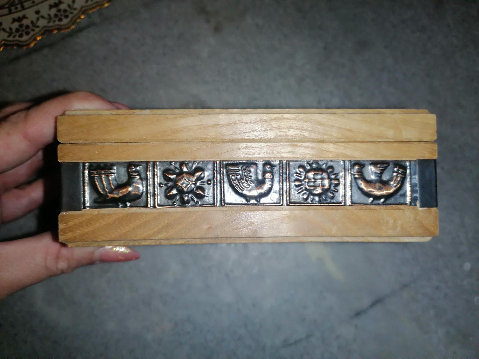 Predám starodávnu drevenú šperkovnicu po babičke. Je zdobená kovovými platničkami s plastikami zvierat. Bezvadný stav. 20 € plus poštovné alebo osobný odber v BA.